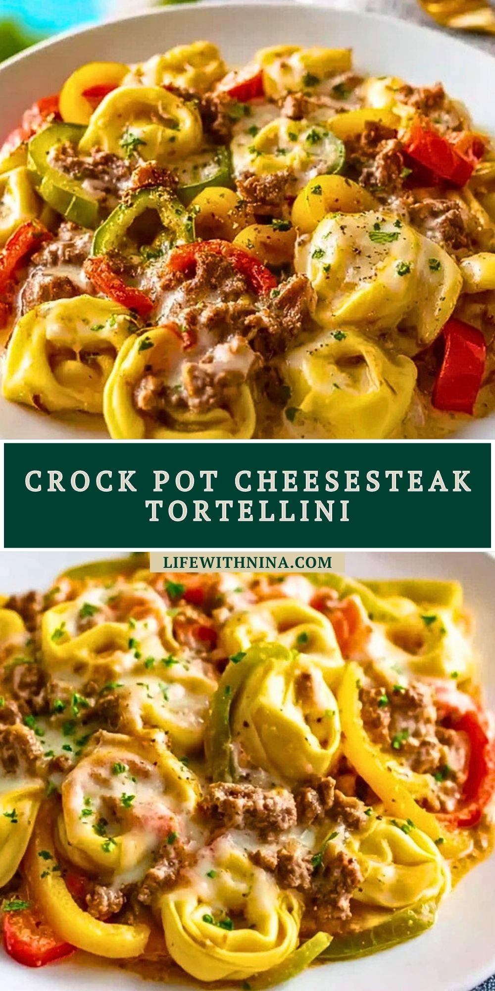 Keywords: crock pot tortellini, cheesesteak pasta, slow cooker meals