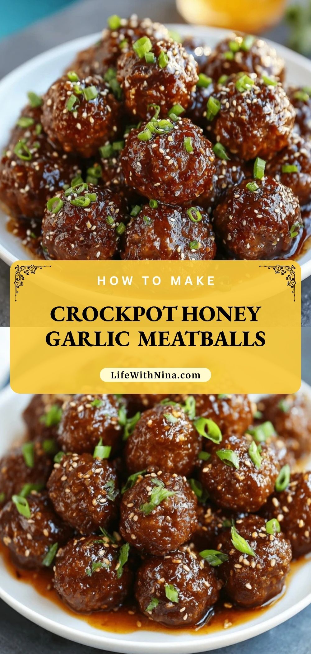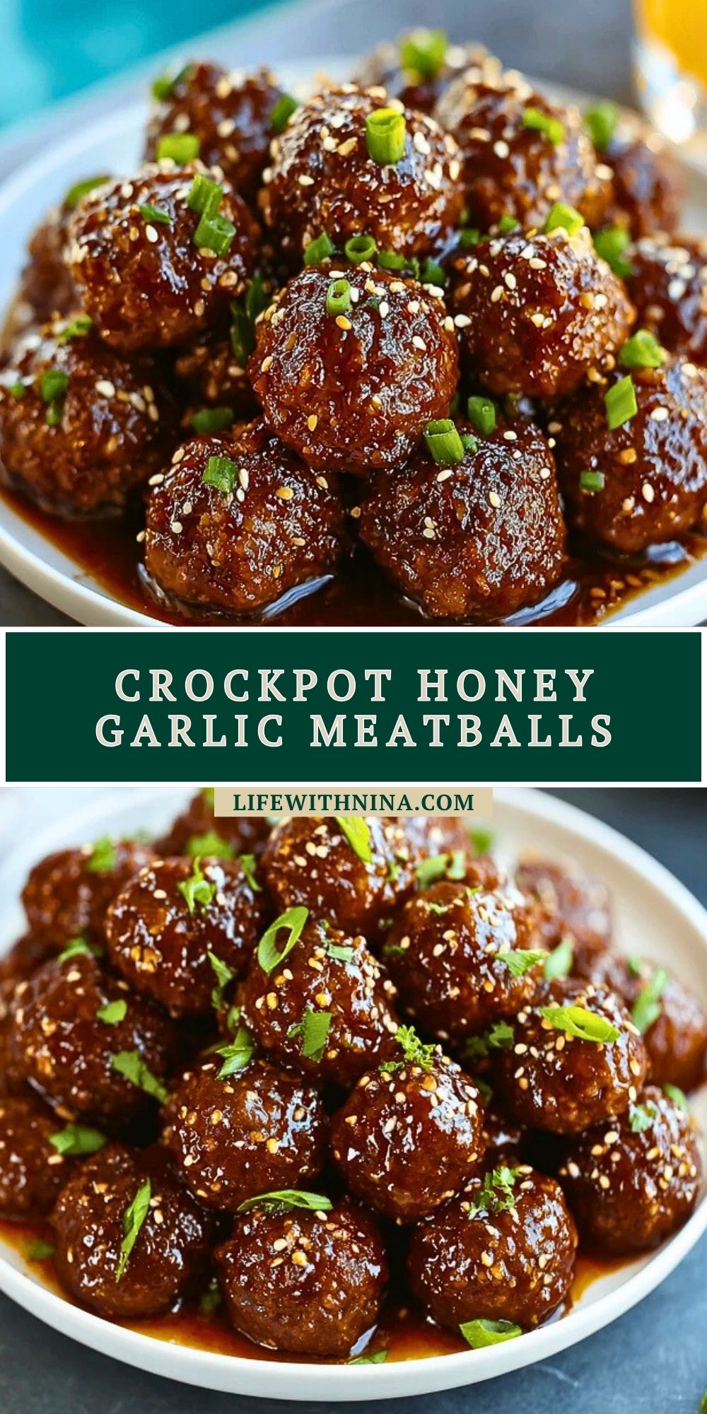 Keywords: honey garlic meatballs, crockpot appetizer, party meatballs