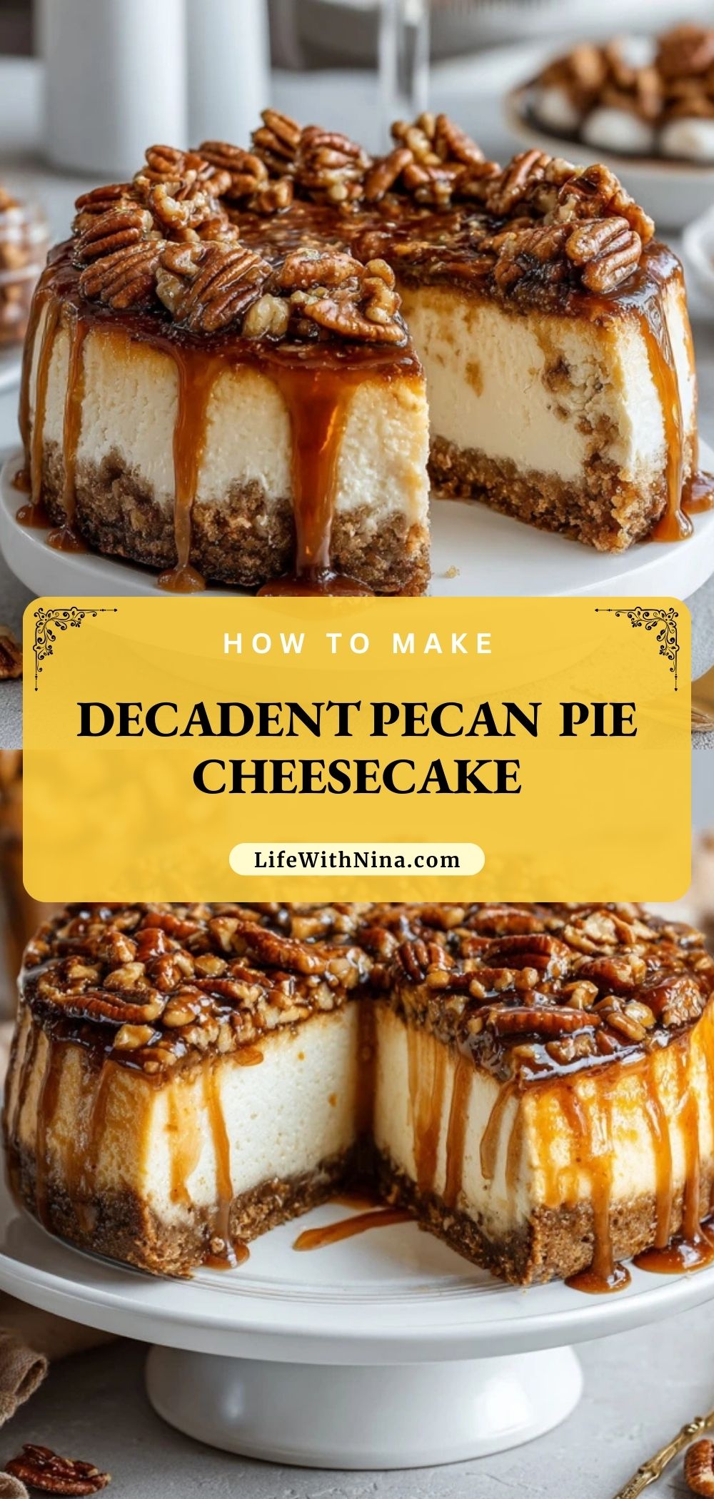 Keywords: pecan pie cheesecake, fall dessert, holiday cheesecake