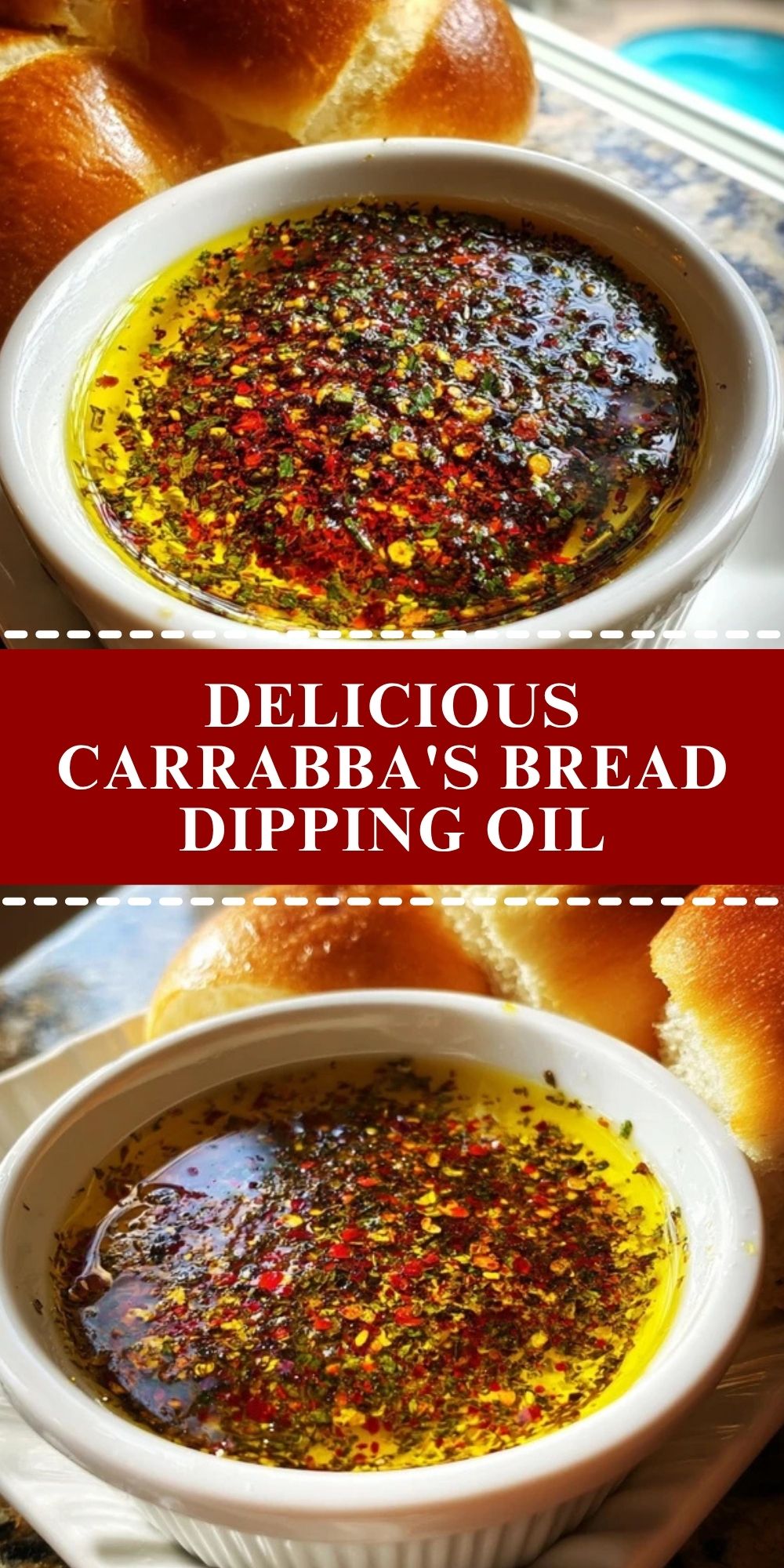 Recreate the iconic Carrabba’s Bread Dipping Oil at home with this easy, flavorful recipe. It’s packed with robust Italian herbs, a hint of spice, and smooth extra virgin olive oil—perfect for pairing with warm, crusty bread or using as a drizzle for vegetables and pasta.