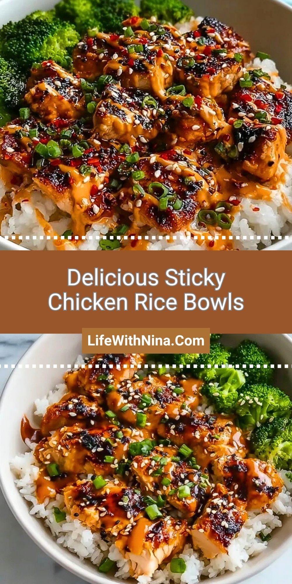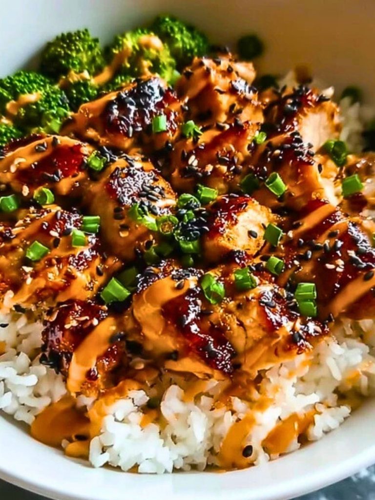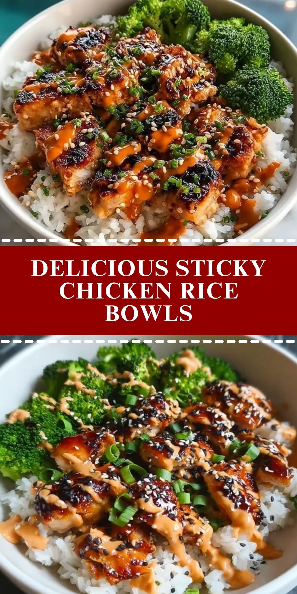 Sticky Chicken Rice Bowls bring together caramelized chicken glazed in a sweet-savory sauce, tender steamed broccoli, and fluffy jasmine rice. Topped with a drizzle of spicy mayo or creamy peanut sauce, this comforting yet exciting dish is perfect for easy weeknight dinners or flavorful meal prep.