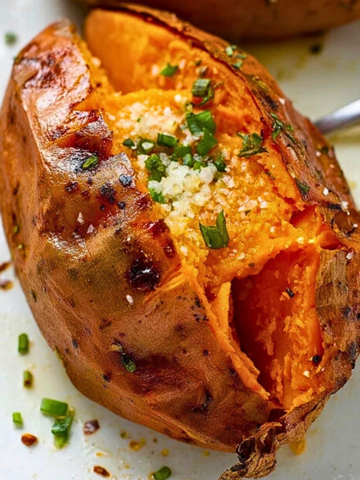 Serve them hot out of the oven with your favorite toppings. For a savory spin, try butter, sour cream, chopped herbs, or even shredded cheese. If you’re leaning sweet, a drizzle of maple syrup, cinnamon, and crushed pecans make for a decadent combo. These also make a great base for stuffed potatoes—pile on black beans, avocado, or a fried egg for a hearty meal.