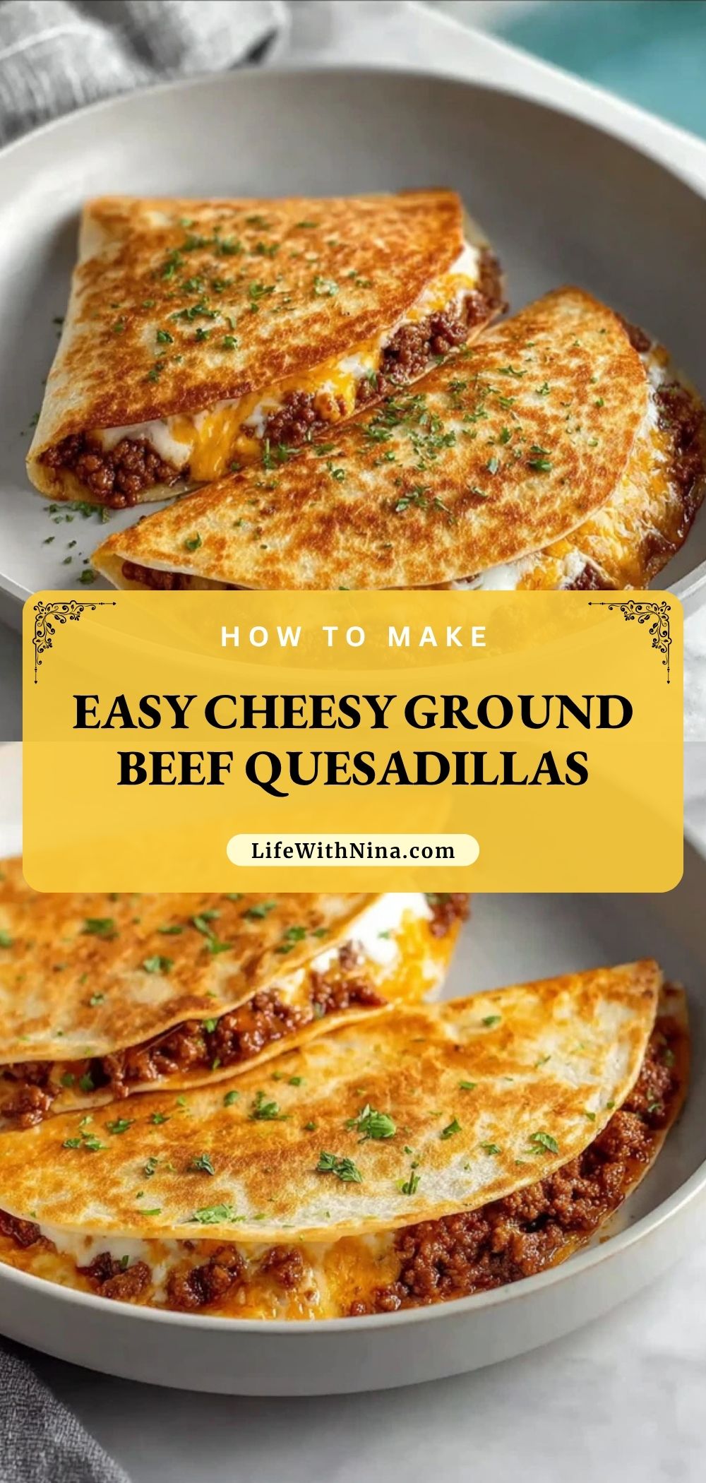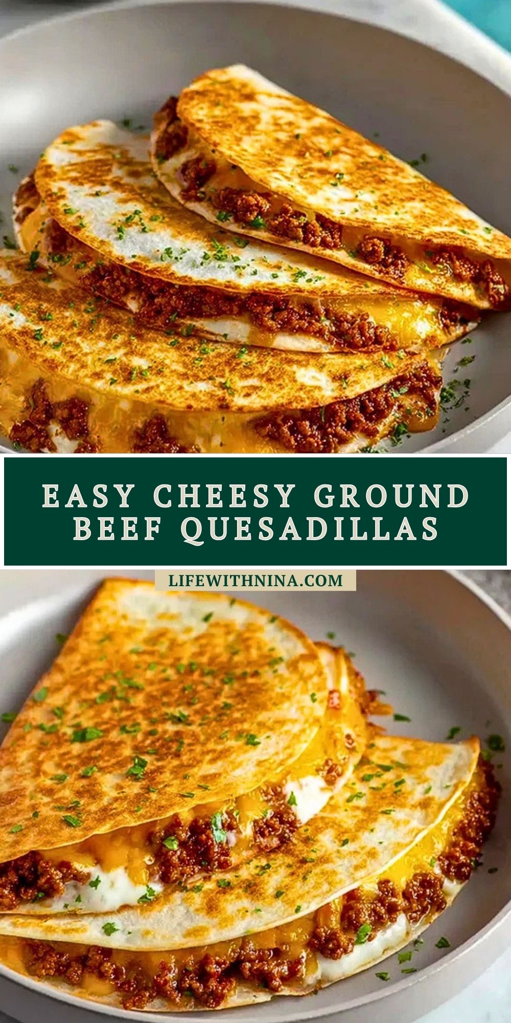 Keywords: easy cheesy ground beef quesadillas, quick dinner, easy dinner, ground beef recipe, cheesy quesadilla recipe, family dinner ideas, food ideas