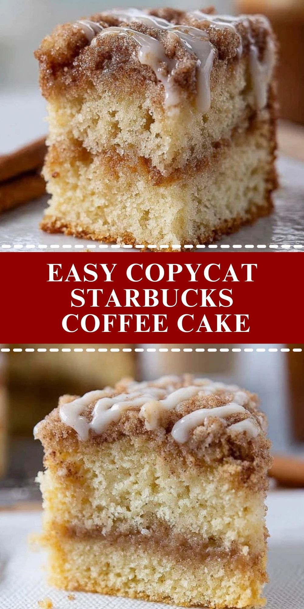 This Easy Copycat Starbucks Coffee Cake brings the iconic bakery-style treat right to your kitchen—fluffy yellow cake layered with cinnamon sugar, topped with buttery crumb, and finished with a simple icing drizzle. Perfect for breakfast, brunch, or dessert with a cup of coffee.