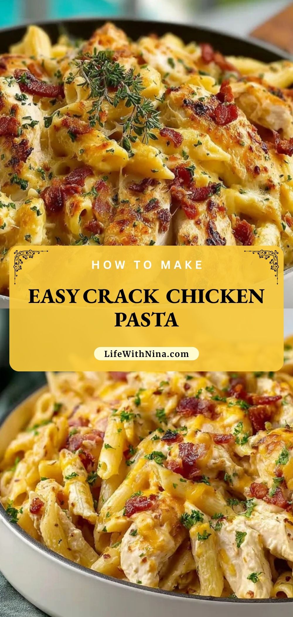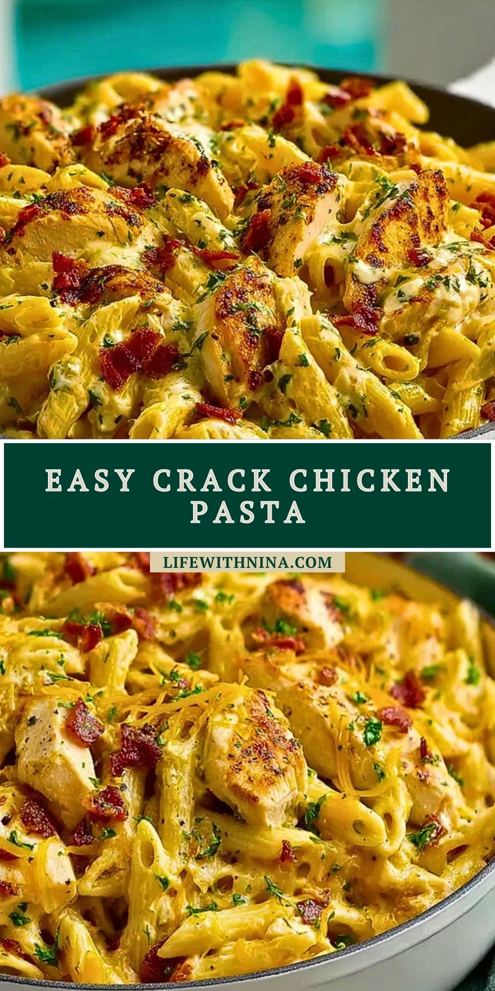 Easy Crack Chicken Pasta is a creamy, cheesy one-pot dinner made with tender chicken, crispy bacon, ranch seasoning, and melty cheddar cheese tossed with pasta. It’s the perfect comfort meal that’s quick enough for a weeknight and indulgent enough to impress guests.