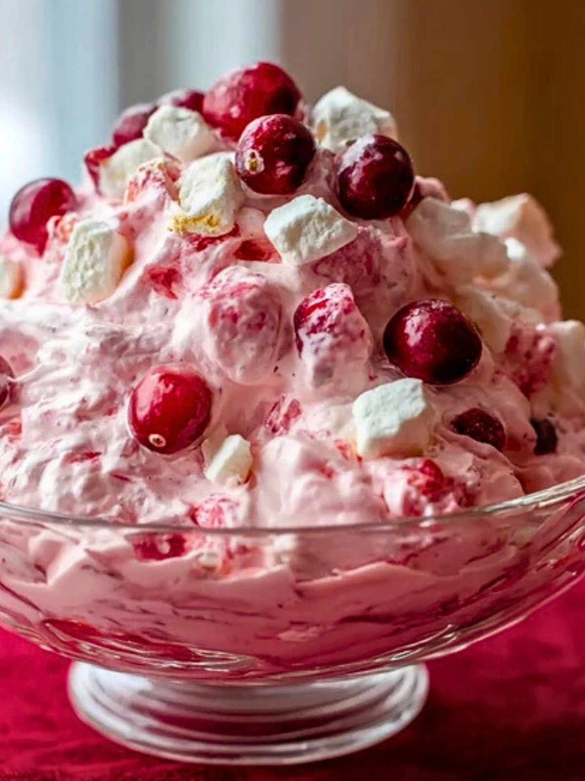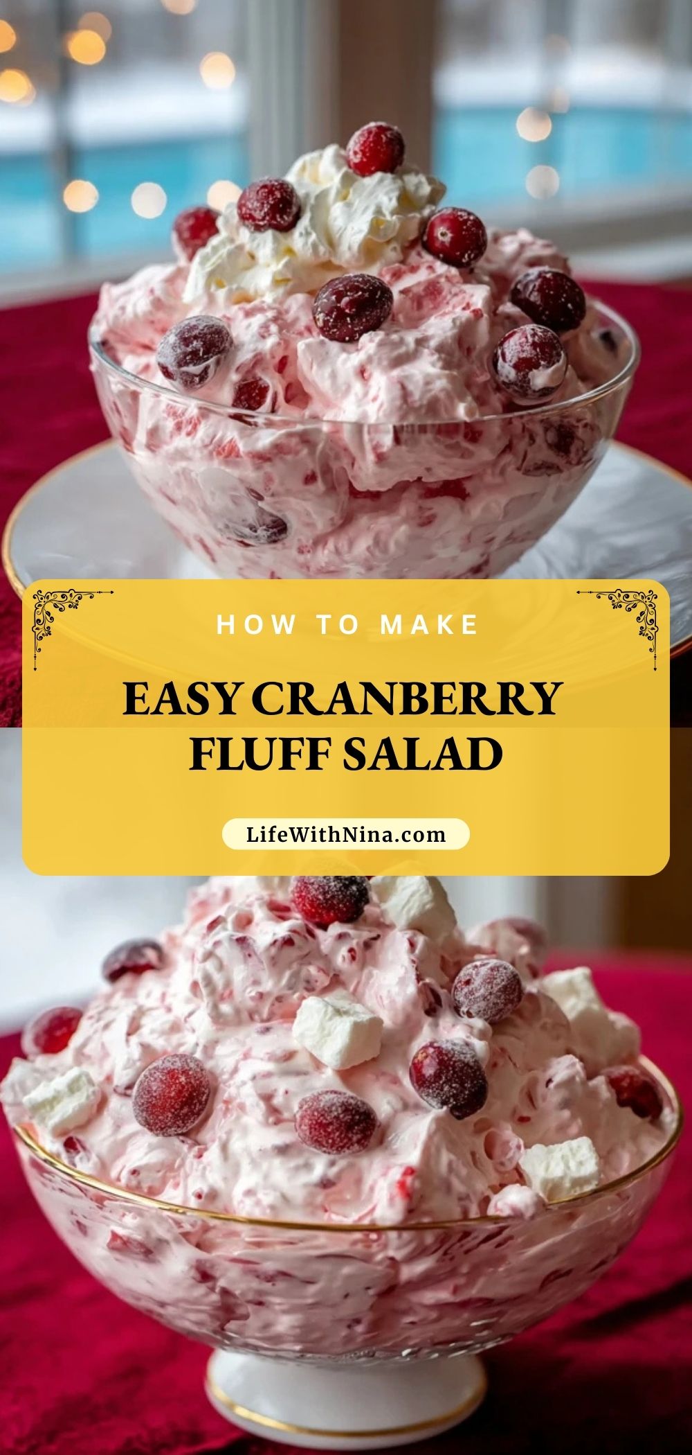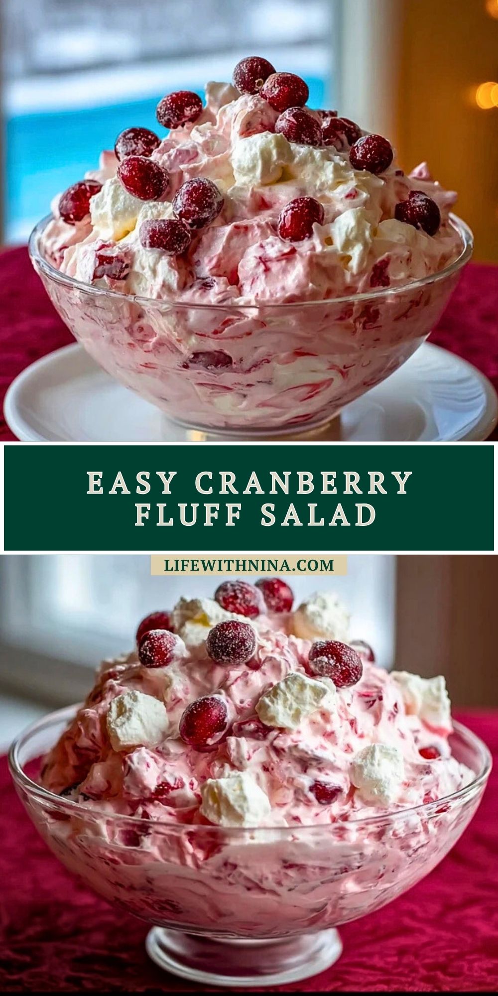 Keywords: cranberry salad, fluff salad, holiday dessert, easy cranberry dessert, no-bake recipe, creamy fruit salad