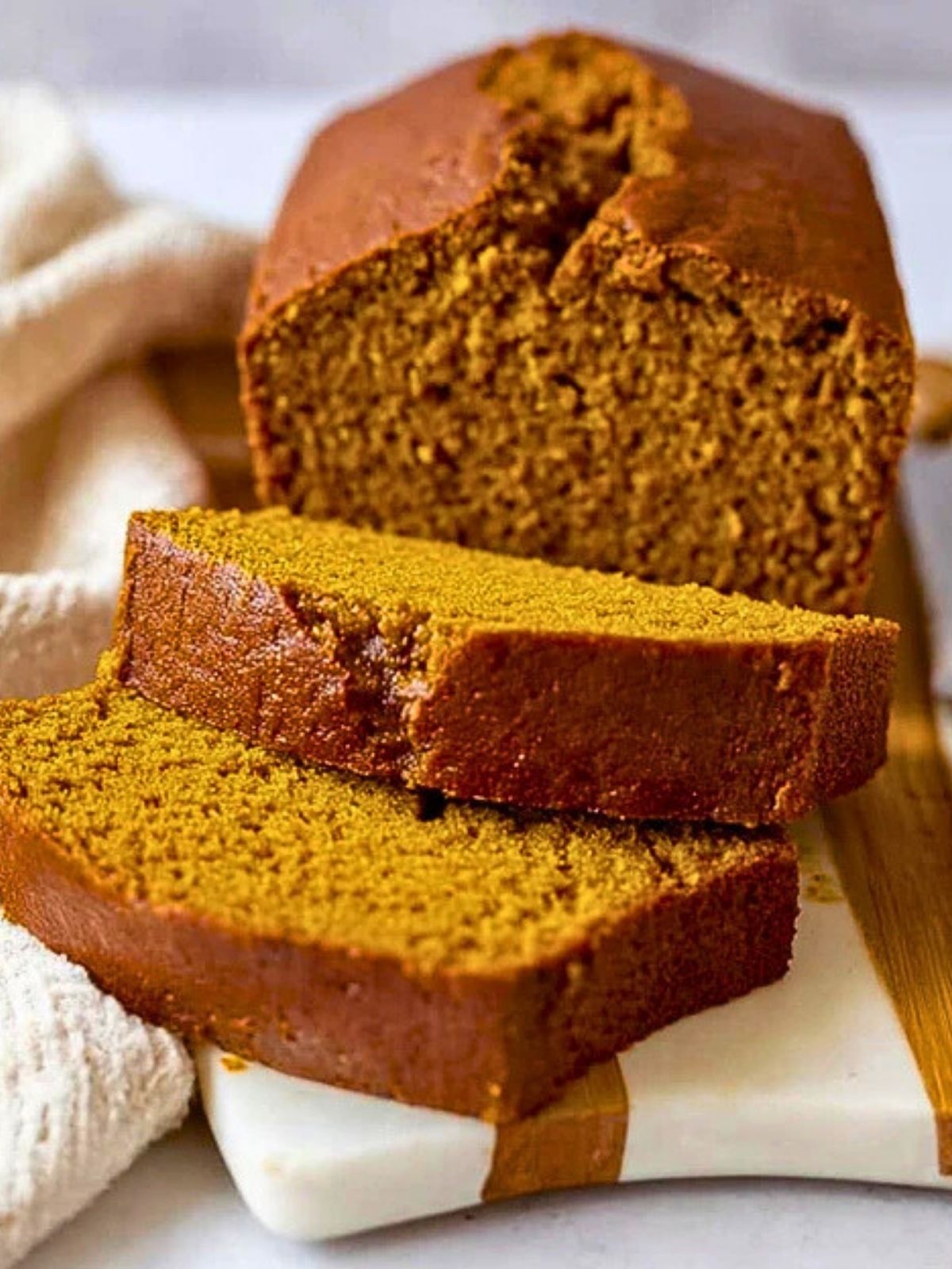Warm, tender slices of this pumpkin bread are perfect with a pat of butter, a smear of cream cheese, or simply on their own. Pair it with a hot mug of coffee or chai tea for the ultimate cozy moment. For an extra treat, drizzle with a light glaze or sprinkle with powdered sugar.