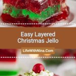 Serve Easy Layered Christmas Jello chilled, straight from the fridge. Use a sharp knife dipped in hot water for clean slices, and a spatula to lift squares neatly. It looks stunning on a dessert tray alongside cookies and holiday candies.
