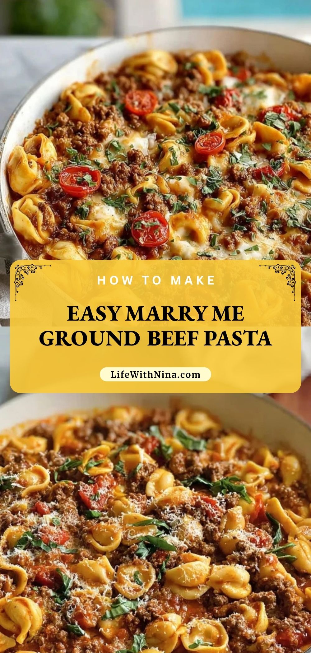 Keywords: easy dinner, ground beef pasta, marry me pasta, tortellini dinner, quick dinner, family dinner ideas, easy recipe, food ideas
