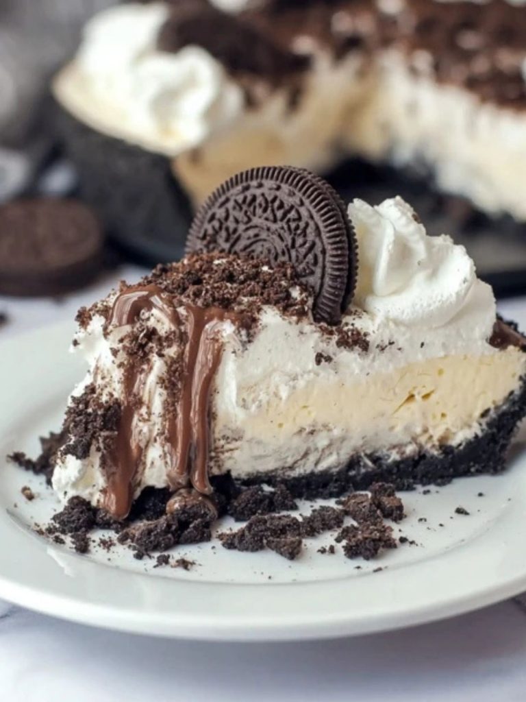 Refrigerate the pie for at least 4 hours, or overnight, to let it fully set. When ready to serve, garnish with an extra Oreo or two and slice into creamy, dreamy layers.