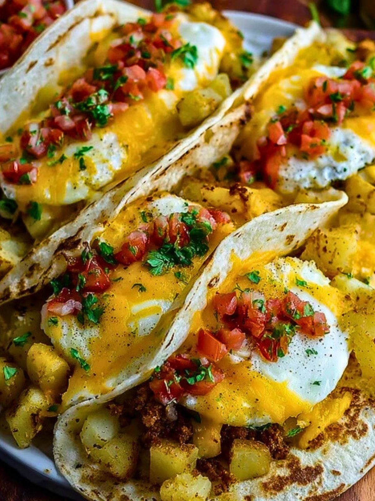 Keywords: breakfast tacos, eggs, potatoes, cheese