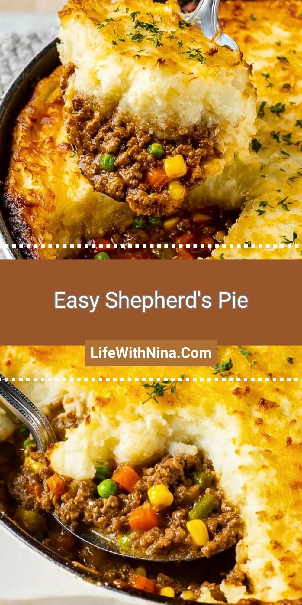 Easy Shepherd’s Pie is a comforting, hearty dinner featuring a layer of creamy mashed potatoes atop a rich and savory beef and vegetable filling. It’s oven-baked until golden and bubbling, making it a perfect weeknight classic or meal-prep champion.