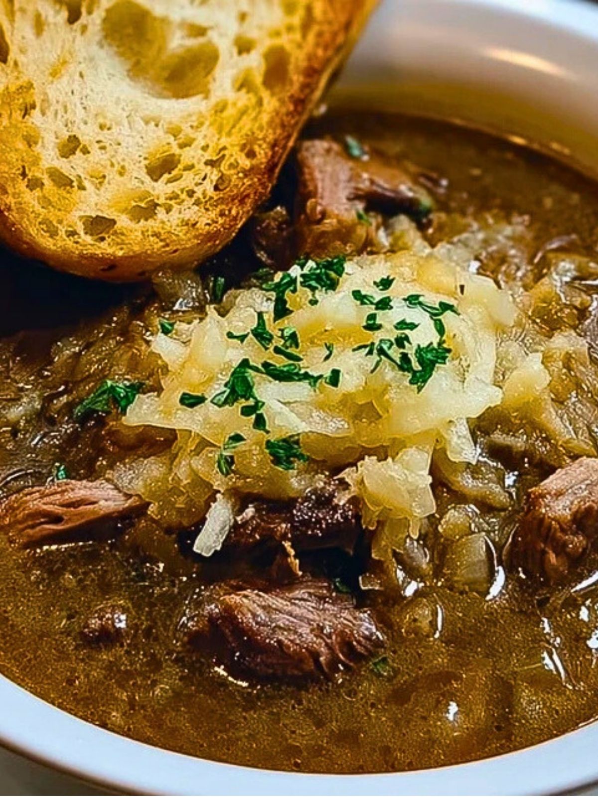 Served with melty cheese and toasted bread or simply on its own, this soup stands out as an elegant comfort dish. Whether you’re serving it for a special dinner or batch-cooking for weekday meals, the result is always satisfying, soothing, and incredibly flavorful.