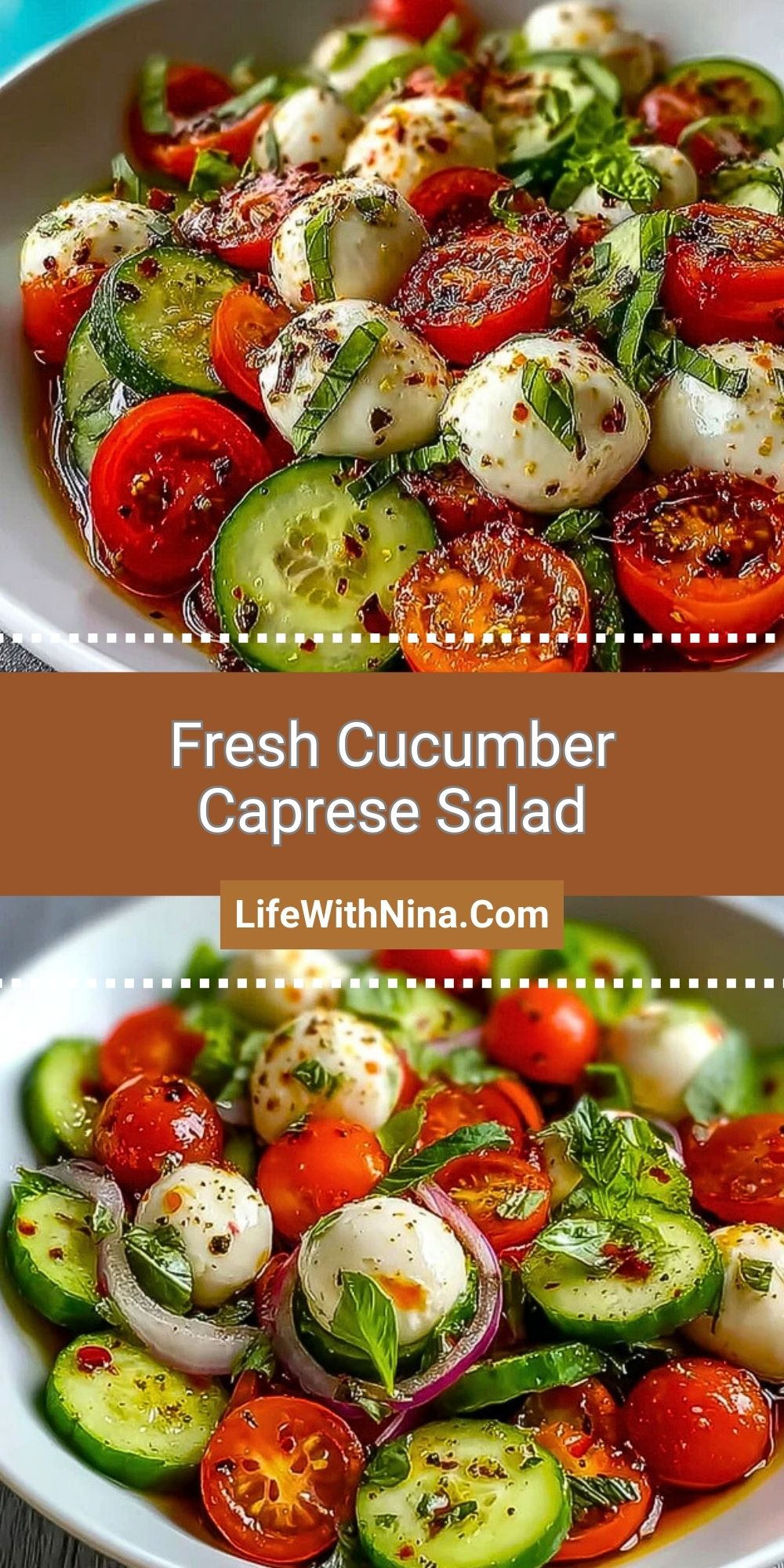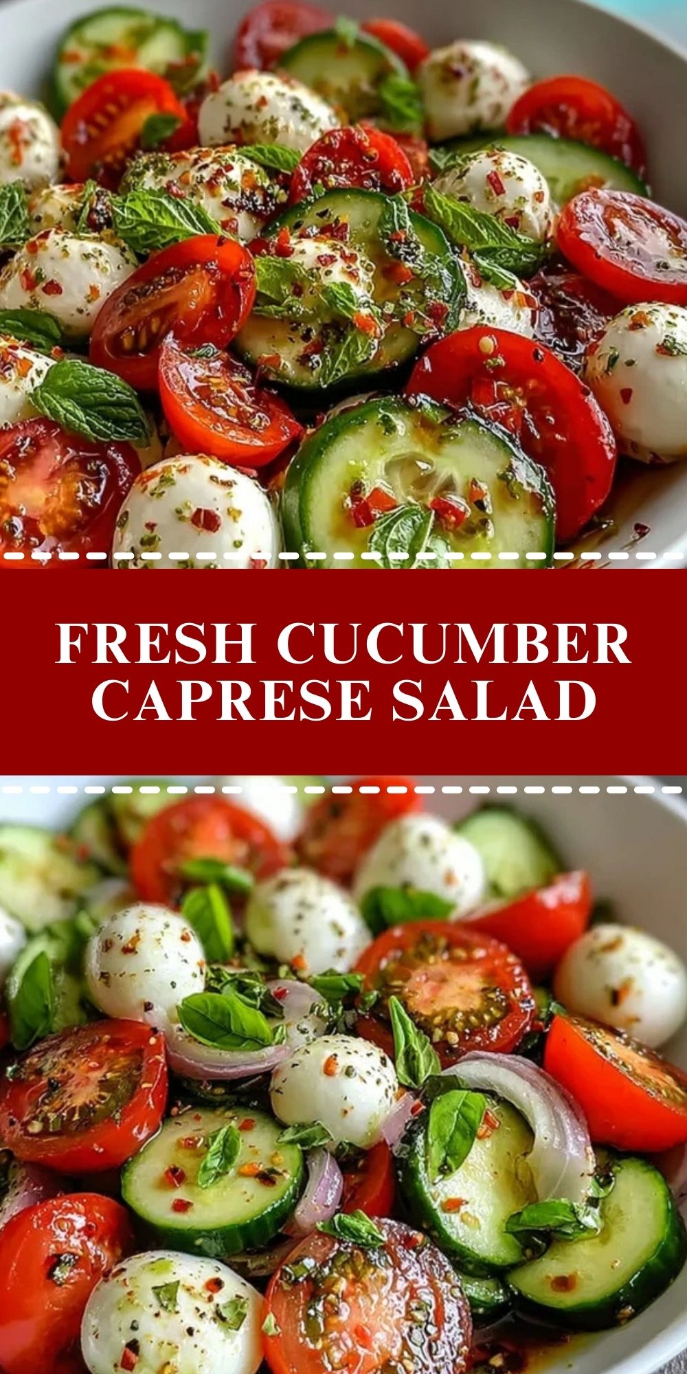 This Fresh Cucumber Caprese Salad is a vibrant and refreshing twist on the classic Caprese. Crisp cucumbers, juicy cherry tomatoes, creamy mozzarella balls, and fresh basil are tossed in a tangy balsamic dressing for a light side dish or snack. Perfect for warm weather, potlucks, or anytime you need a flavorful salad in minutes.