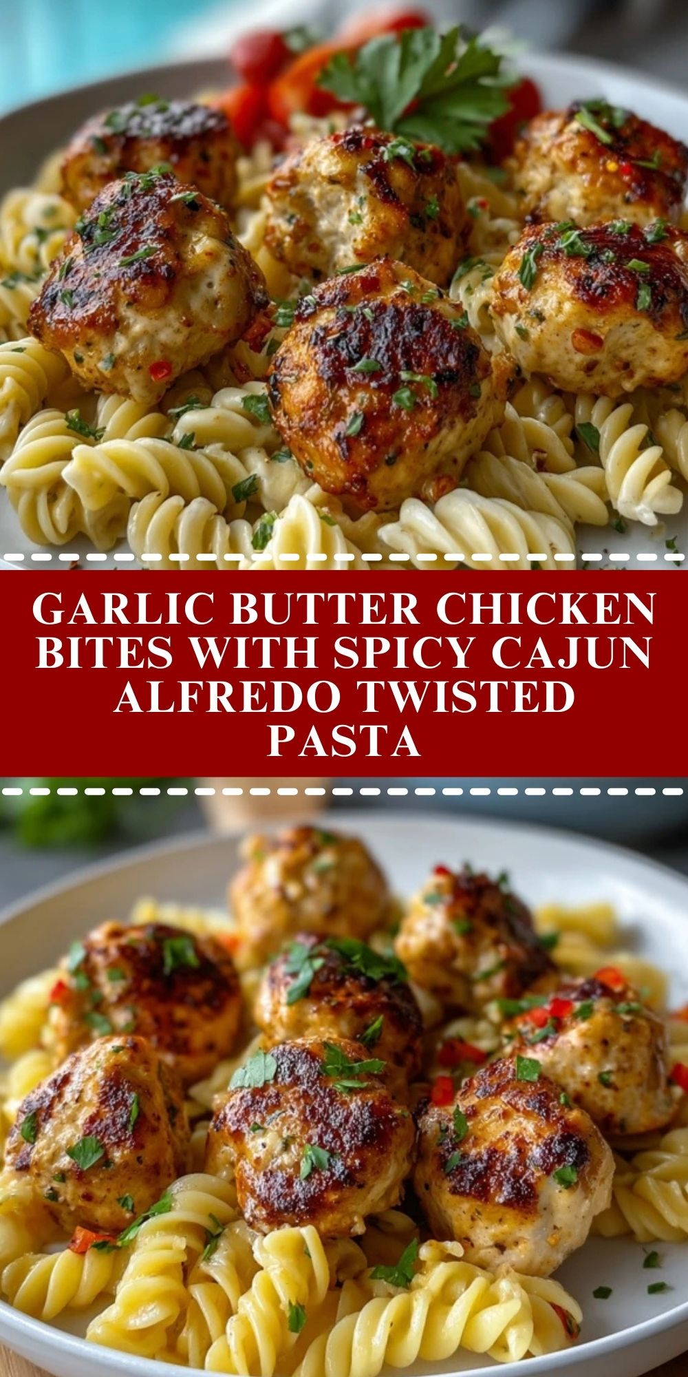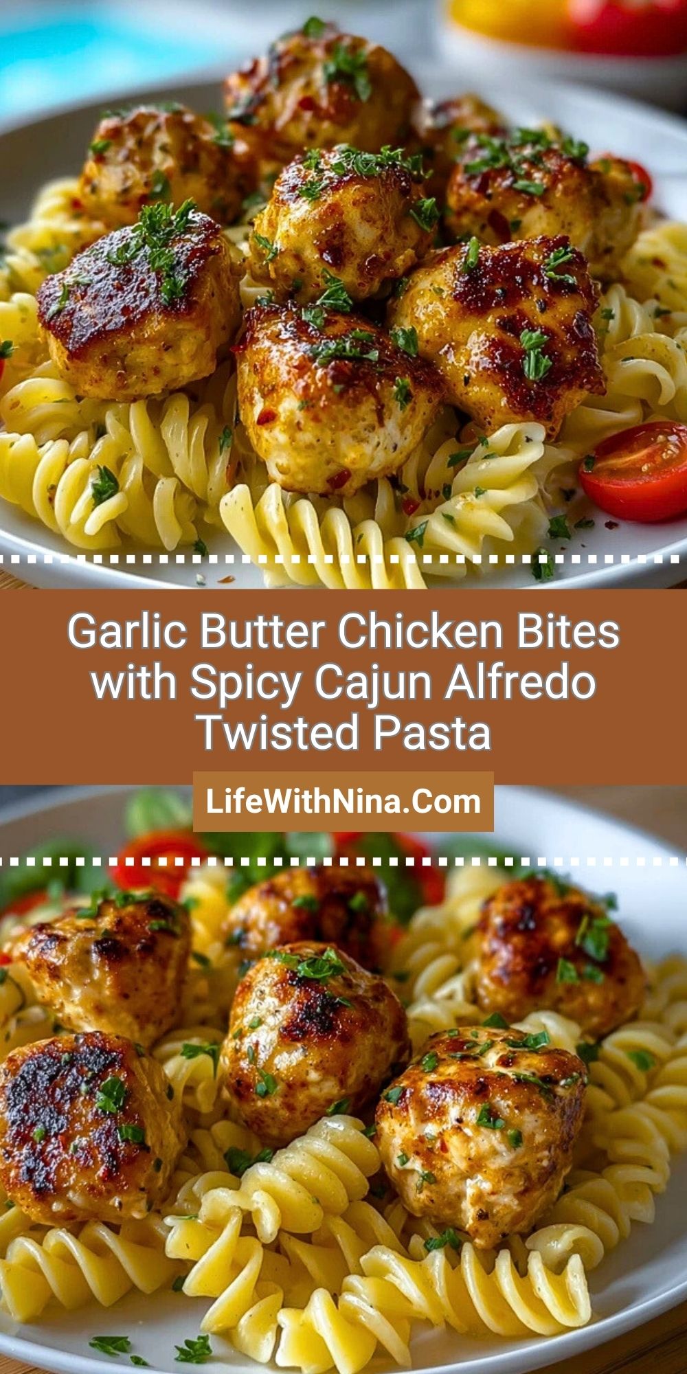 Garlic Butter Chicken Bites with Spicy Cajun Alfredo Twisted Pasta