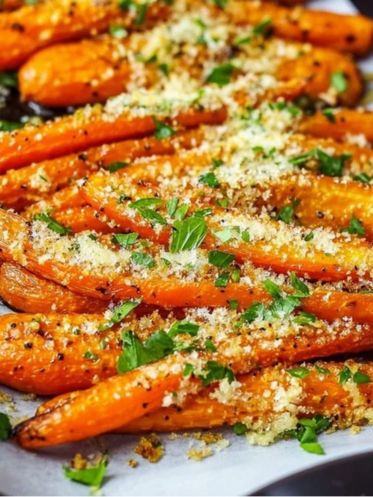 These Garlic Parmesan Roasted Carrots are roasted until perfectly tender and caramelized, then topped with crunchy golden Panko, fresh garlic, and nutty Parmesan. An easy, flavorful veggie side dish for any meal or holiday spread.