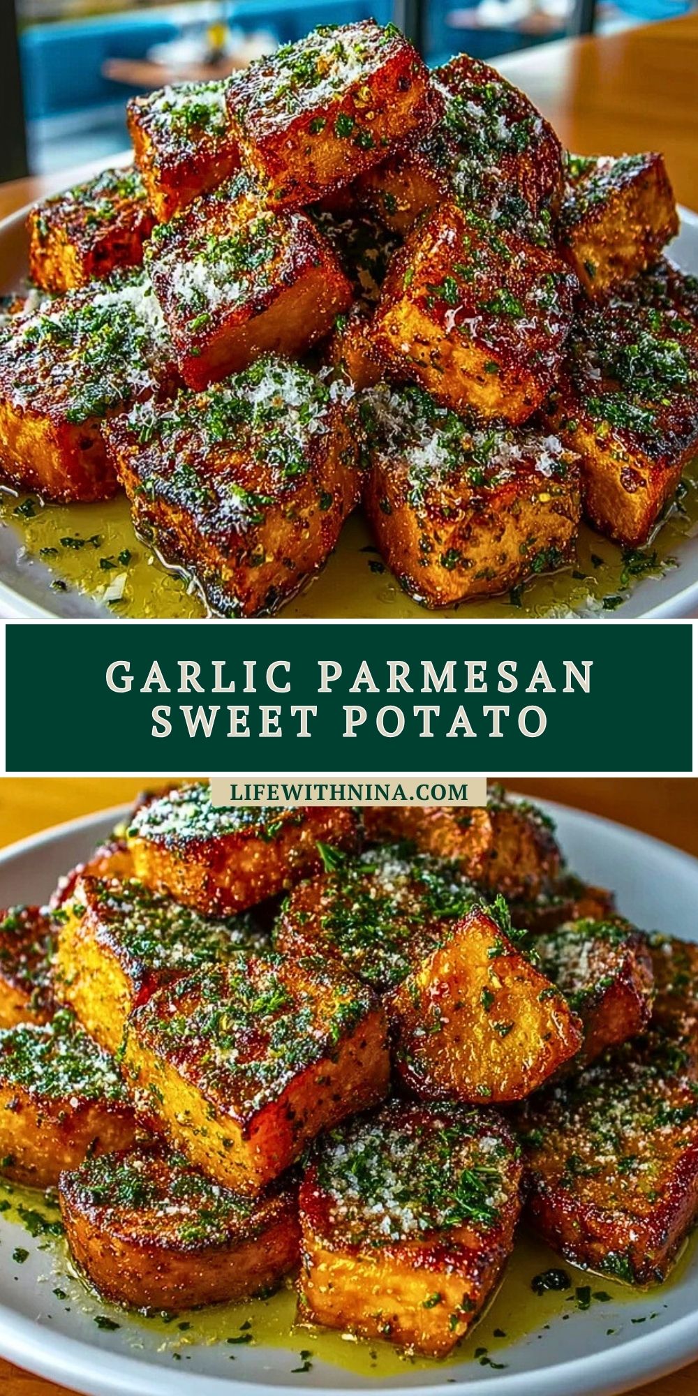 Keywords: garlic sweet potato, parmesan sweet potato, oven roasted sweet potato