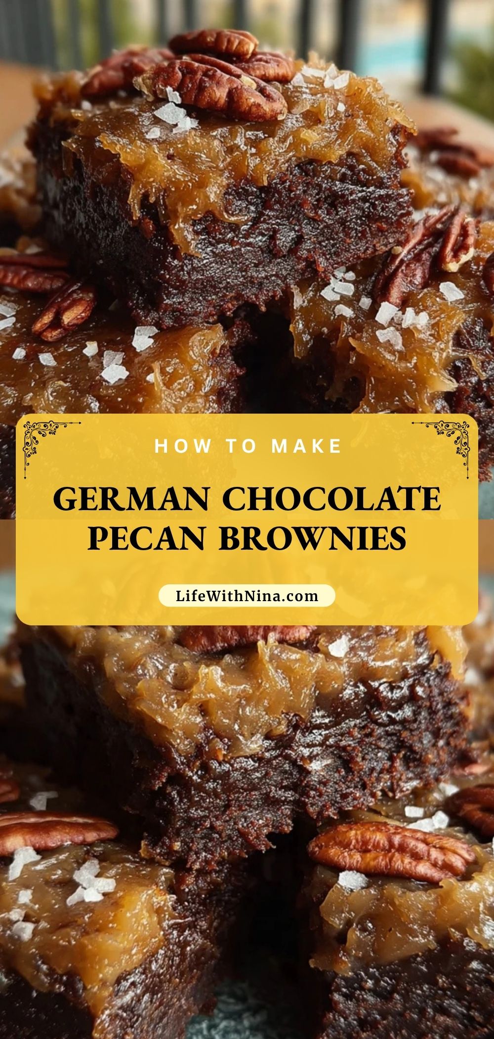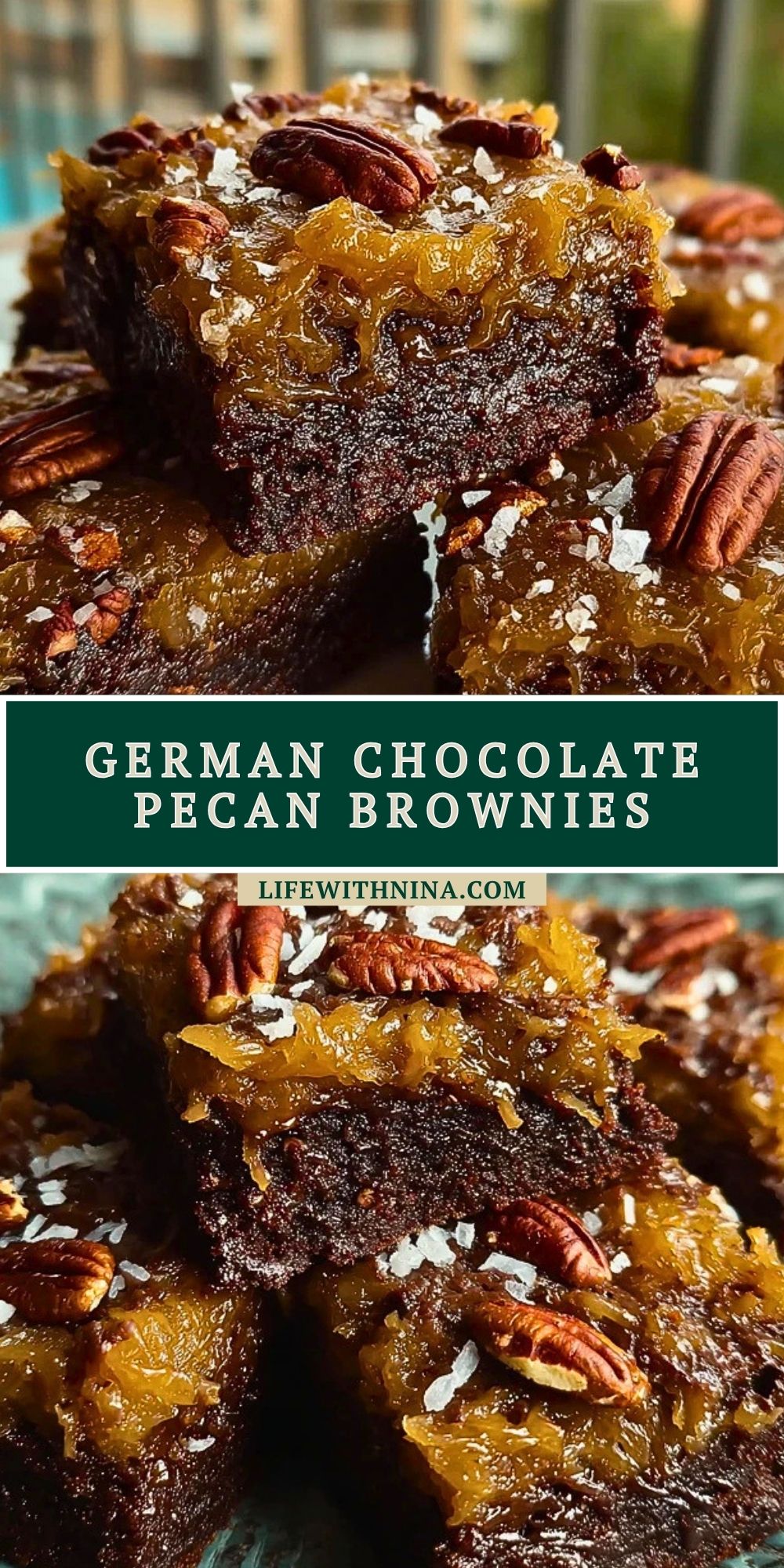 Keywords: German Chocolate Pecan Brownies, german chocolate brownies, pecan brownies, coconut pecan brownies, chocolate dessert, easy dessert ideas, holiday dessert, fudgy brownies, homemade brownies, dessert bars