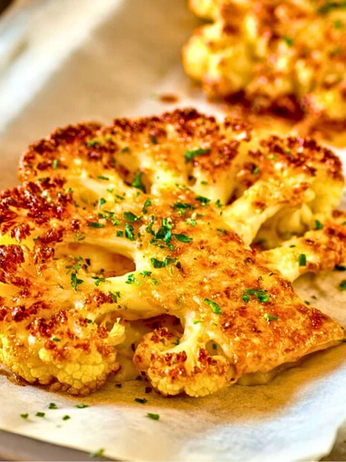 Keywords: Cauliflower steaks, roasted vegetables, cheesy sides, low-carb, vegetarian