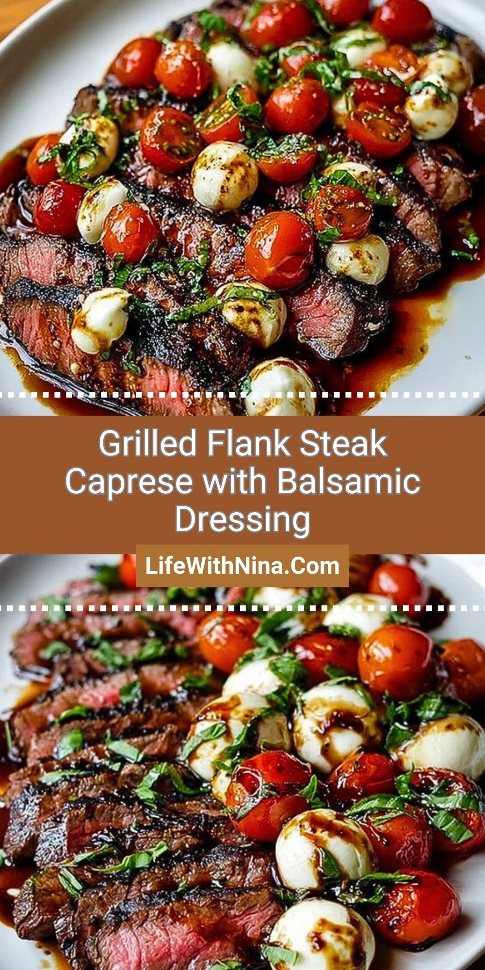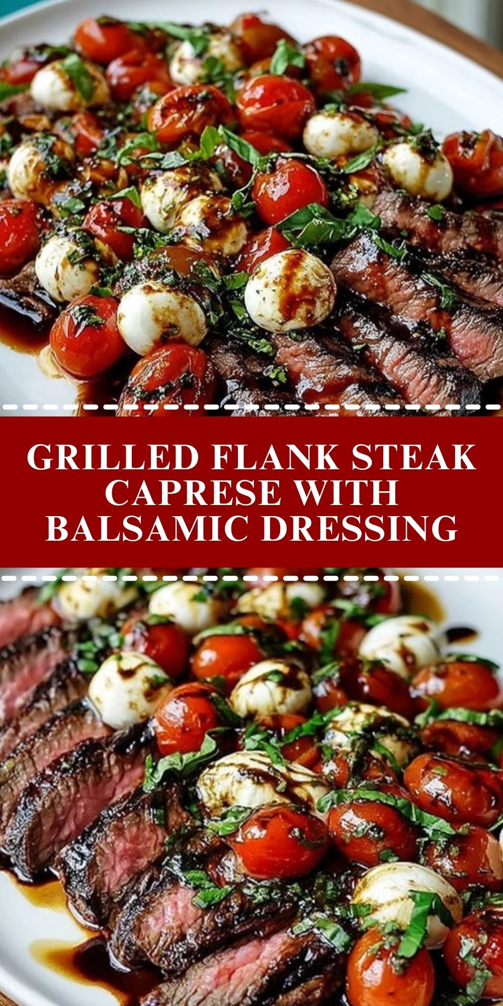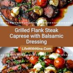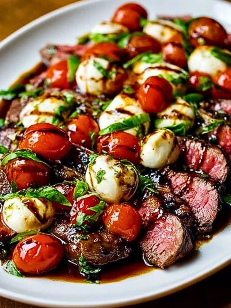 This Grilled Flank Steak Caprese with Balsamic Dressing is a summer dinner dream—juicy grilled steak topped with creamy mozzarella, blistered cherry tomatoes, and fresh basil, finished with a rich balsamic glaze. It’s easy, elegant, and packed with bold flavor, perfect for entertaining or a weeknight indulgence.