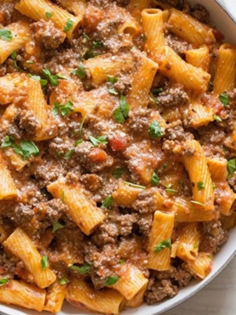 This Ground Beef Pasta is a comforting and hearty one-skillet meal that’s quick to prepare and full of rich Italian flavor. Perfect for weeknights or meal prep, the savory beef, seasoned tomato sauce, and tender pasta come together in a cheesy, satisfying dish the whole family will love.