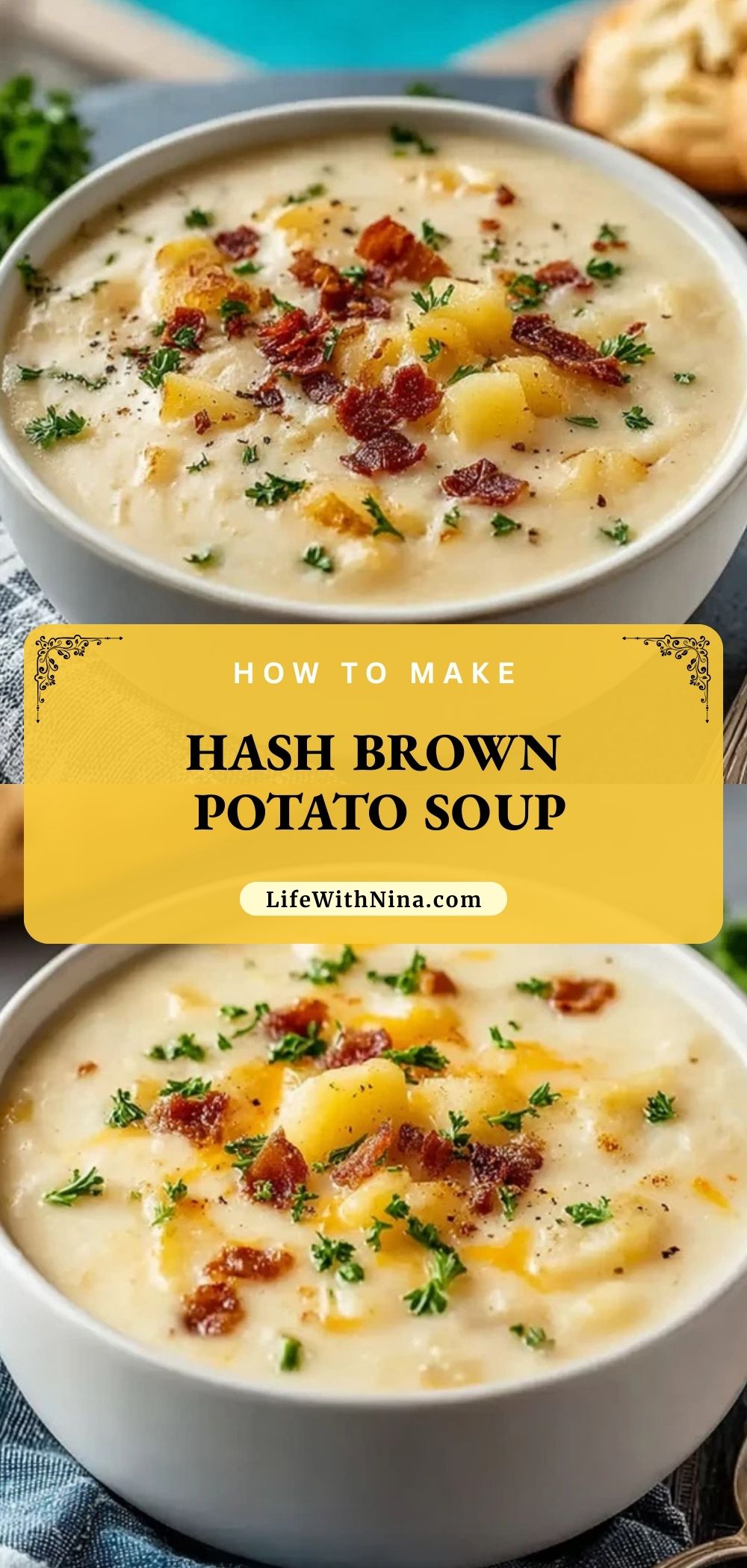 Hash Brown Potato Soup is the ultimate creamy, cheesy comfort food perfect for busy nights or cozy weekends. Made with frozen hash browns, a blend of cheeses, and savory seasonings, this soup comes together quickly in one pot without sacrificing that slow-cooked flavor. Top with crispy bacon and serve warm for a hearty, satisfying meal the whole family will love.