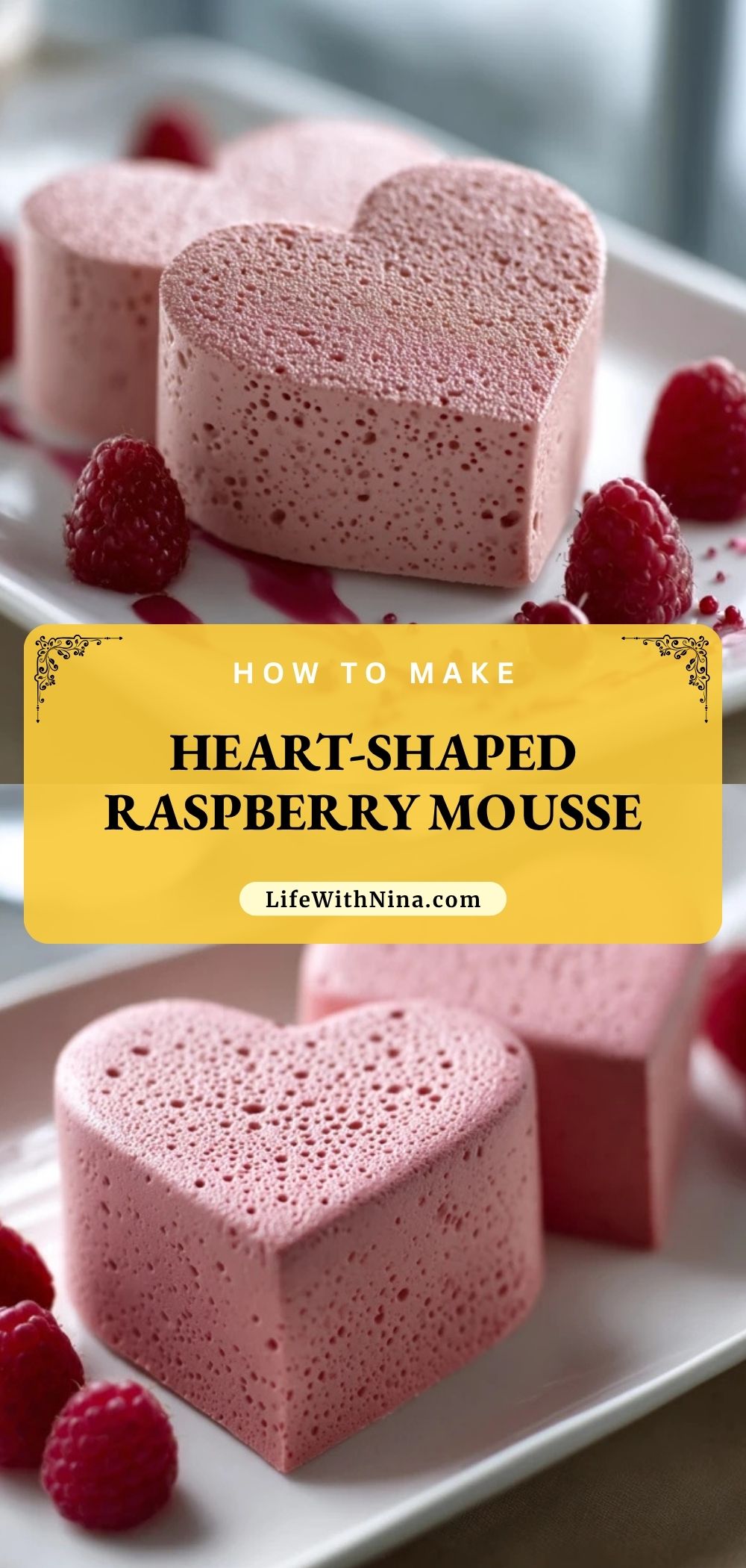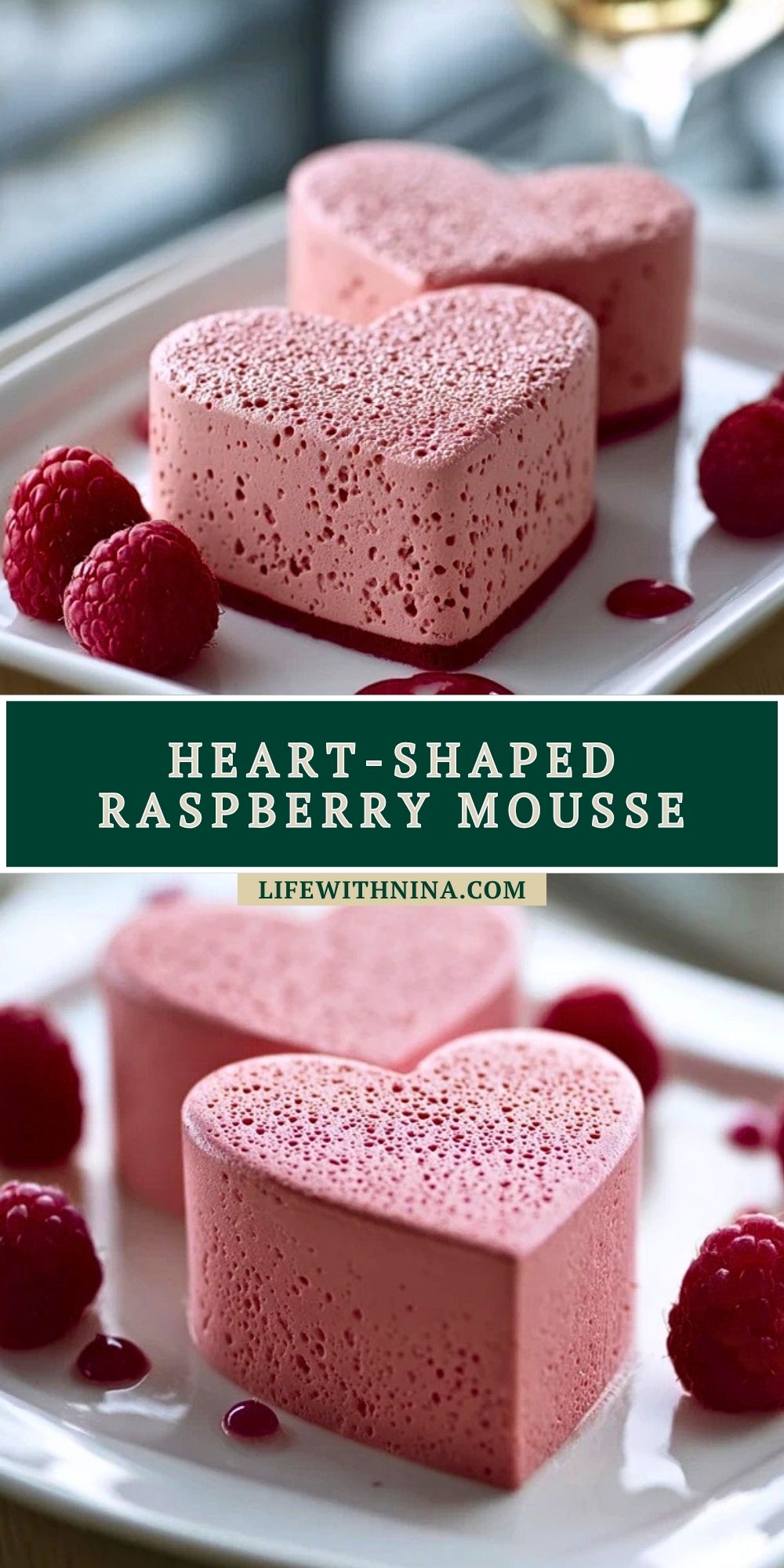 Keywords: heart-shaped raspberry mousse, raspberry mousse dessert, no-bake dessert, Valentine’s Day dessert, easy dessert, dessert ideas, food ideas, party dessert, romantic dessert, berry mousse