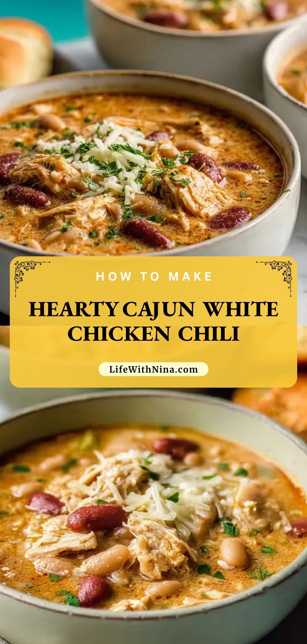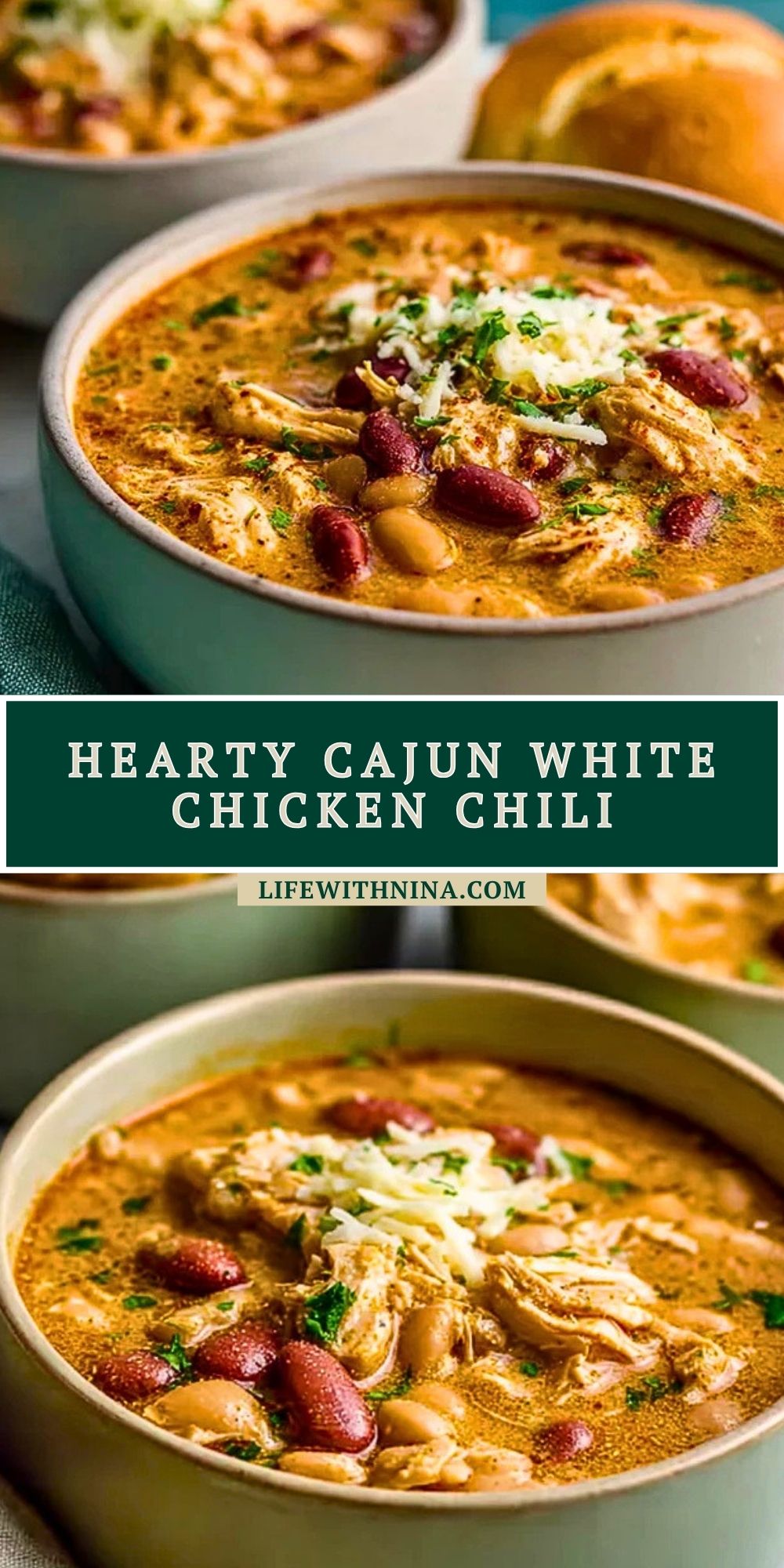 Keywords: hearty cajun white chicken chili, white chicken chili, cajun chicken chili, easy dinner, comfort food, dinner ideas, easy recipe, food ideas