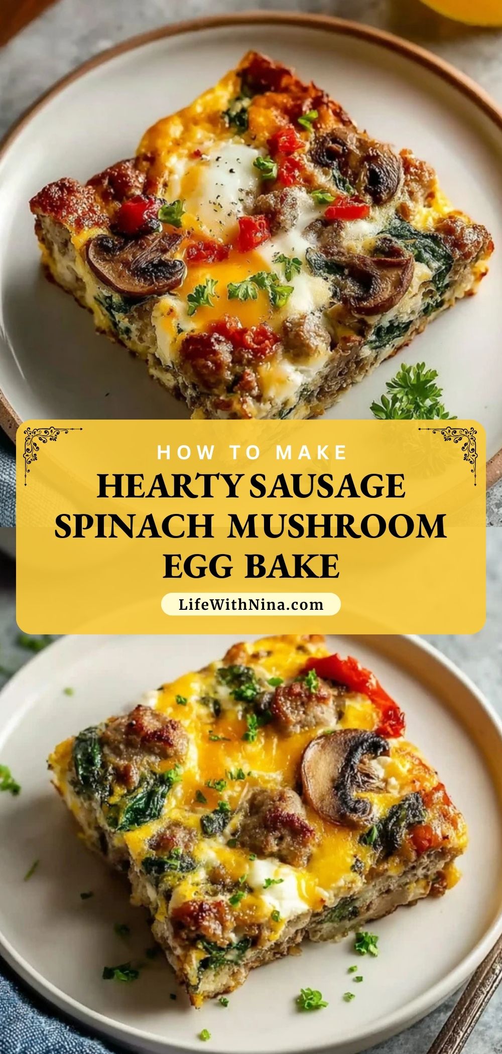 This Hearty Sausage Spinach Mushroom Egg Bake is a flavorful, protein-packed breakfast casserole perfect for meal prep, brunch, or an easy family breakfast. Made with savory sausage, fresh vegetables, eggs, and melty cheese, it’s satisfying and endlessly customizable.