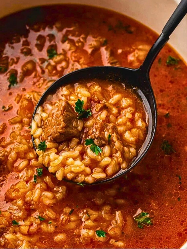 This Hearty Tomato Rice Soup is the ultimate bowl of comfort. With chunks of tender beef, long-grain rice, and a richly seasoned tomato broth, it’s the perfect meal to warm you up from the inside out. Whether made fresh or reheated the next day, this soup is a cozy classic.