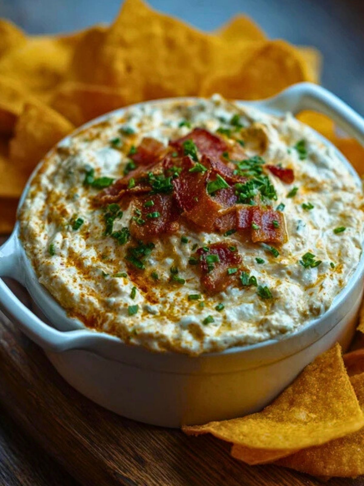 This dip is best served piping hot straight from the oven. Transfer it to a serving dish that retains heat well, or keep it warm in a small slow cooker during parties. Pair it with crunchy tortilla chips, crackers, toasted bread, or even veggies like celery and bell pepper strips.