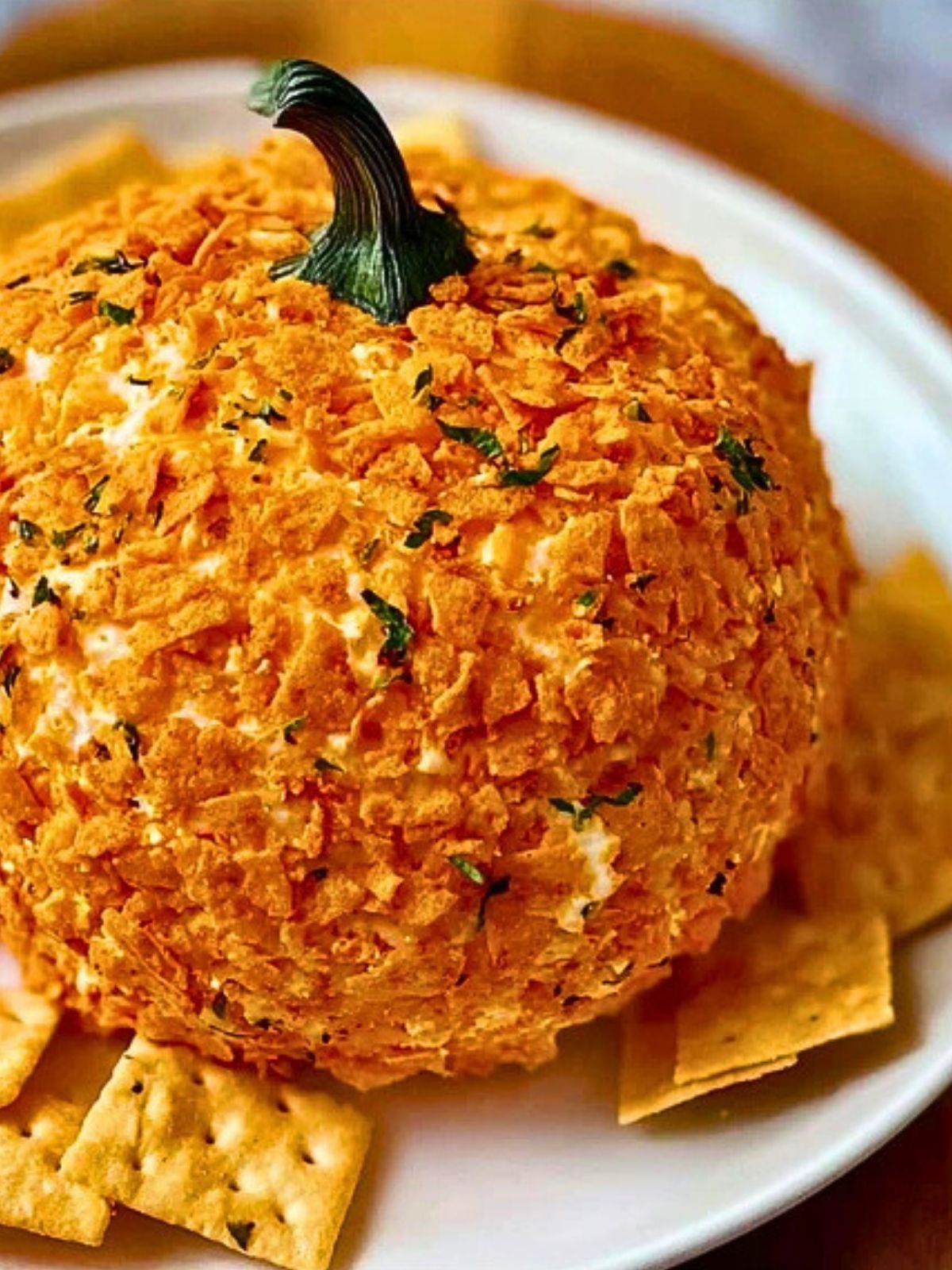 Homemade Doritos Pumpkin Shaped Cheese Ball