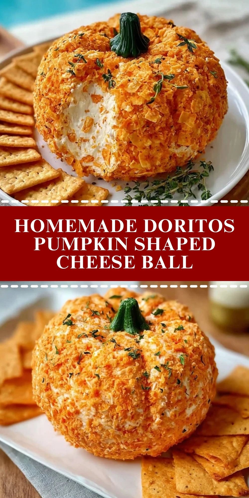 Keywords: cheese ball, fall appetizer, pumpkin, doritos, halloween