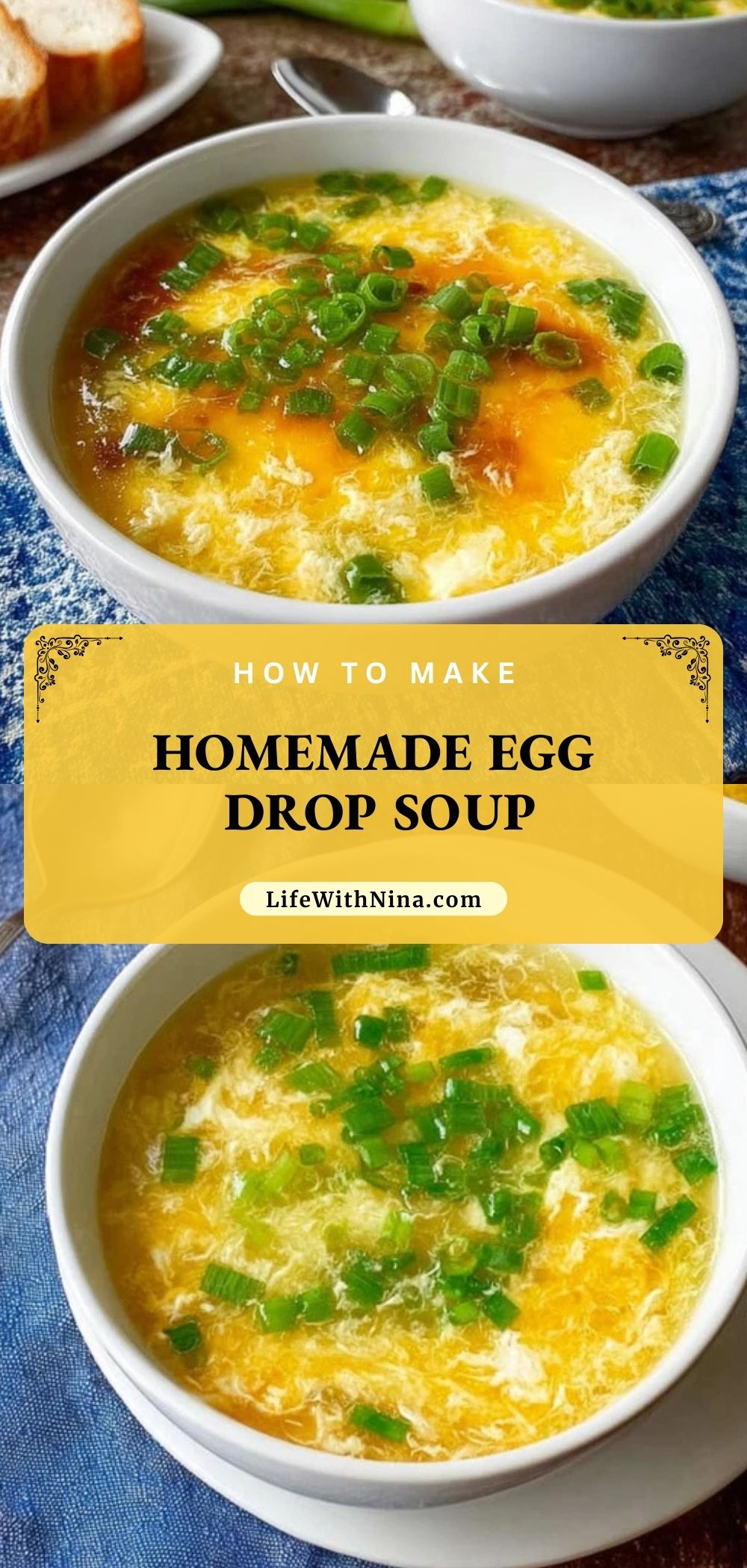 Homemade Egg Drop Soup is best served immediately while it’s hot and the egg ribbons are fresh and tender. Garnish with extra green onions, a drizzle of sesame oil, or even a few drops of chili oil if you like a spicy kick. For a heartier meal, pair it with steamed dumplings, spring rolls, or a side of stir-fried vegetables.
