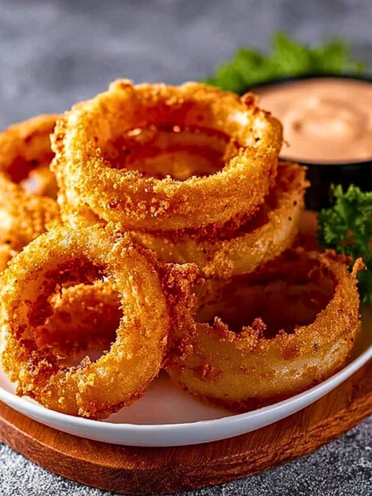 Onion rings are at their best when served fresh out of the fryer. Pile them high on a platter and offer a side of spicy mayo, ranch, or classic ketchup for dipping. They’re an ideal pairing with burgers, BBQ, or even as a crunchy topping on salads or sandwiches.