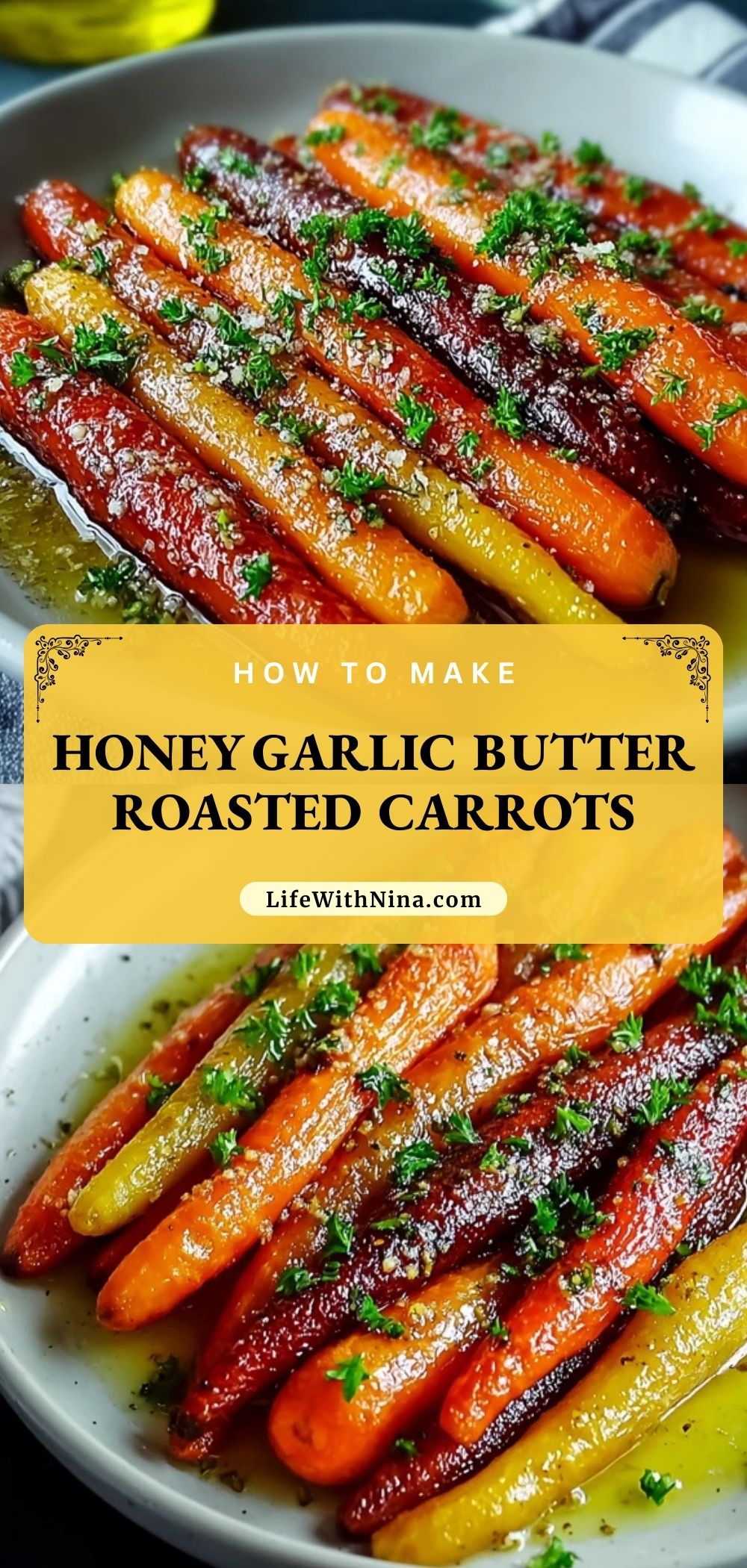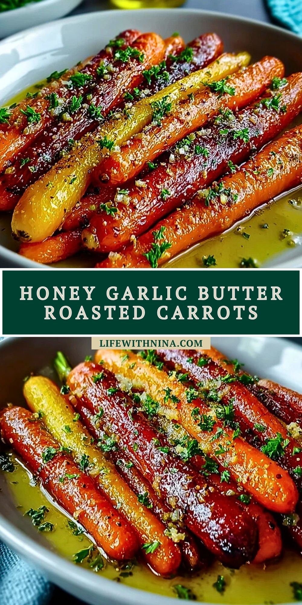 Keywords: roasted carrots, honey glazed carrots, garlic butter carrots, easy dinner side, vegetable side dish