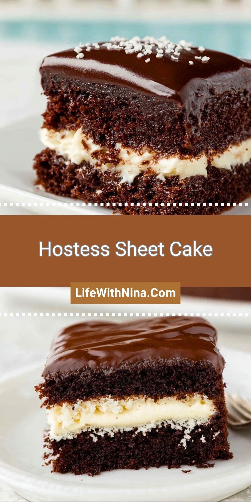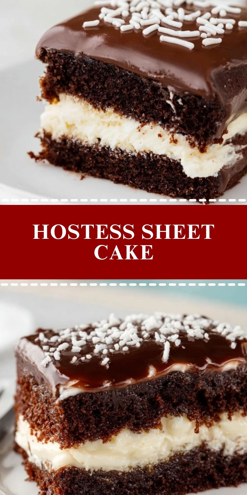 This Hostess Sheet Cake is everything you love about the classic cupcake—layered with ultra-moist chocolate cake, fluffy marshmallow cream filling, and a silky ganache topping—in one easy, party-ready sheet cake. A nostalgic dessert with impressive flavor and texture, perfect for birthdays, potlucks, or sweet cravings.