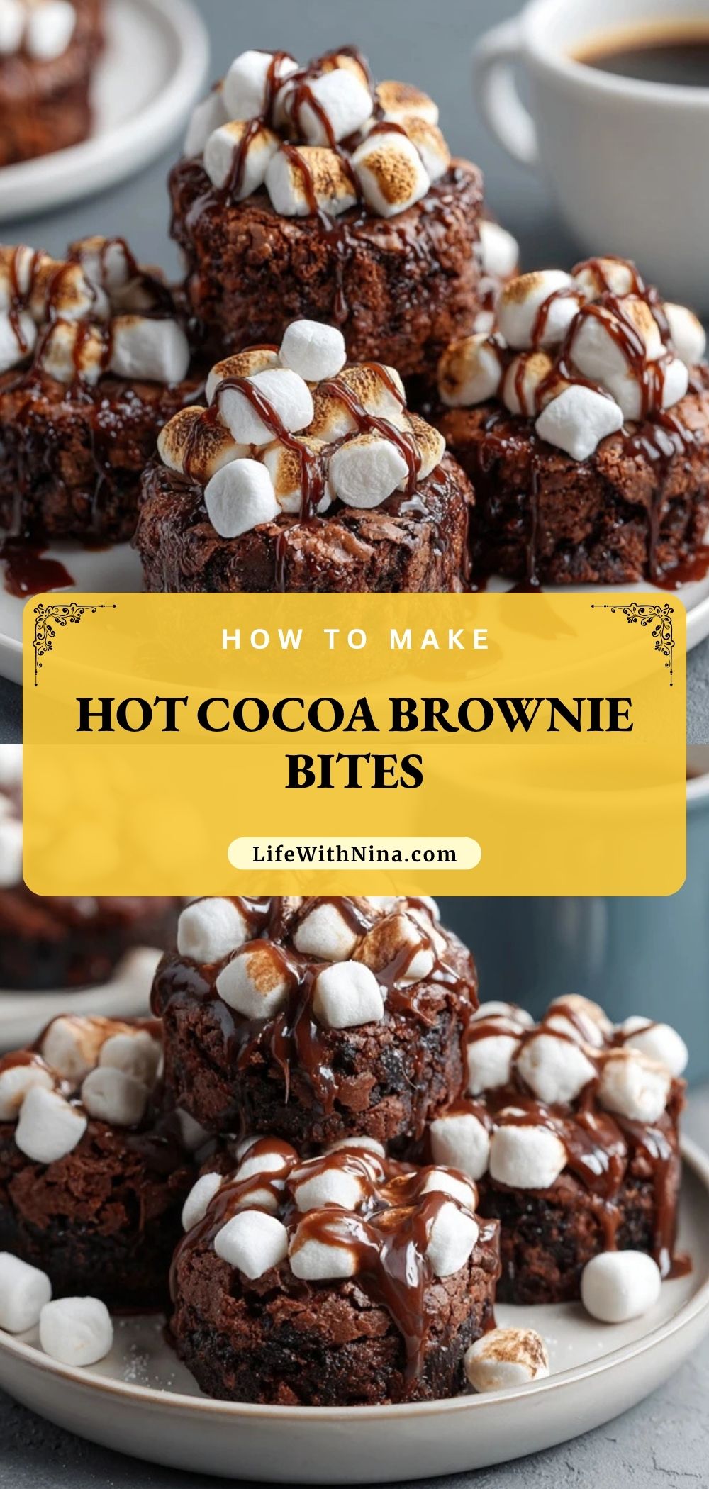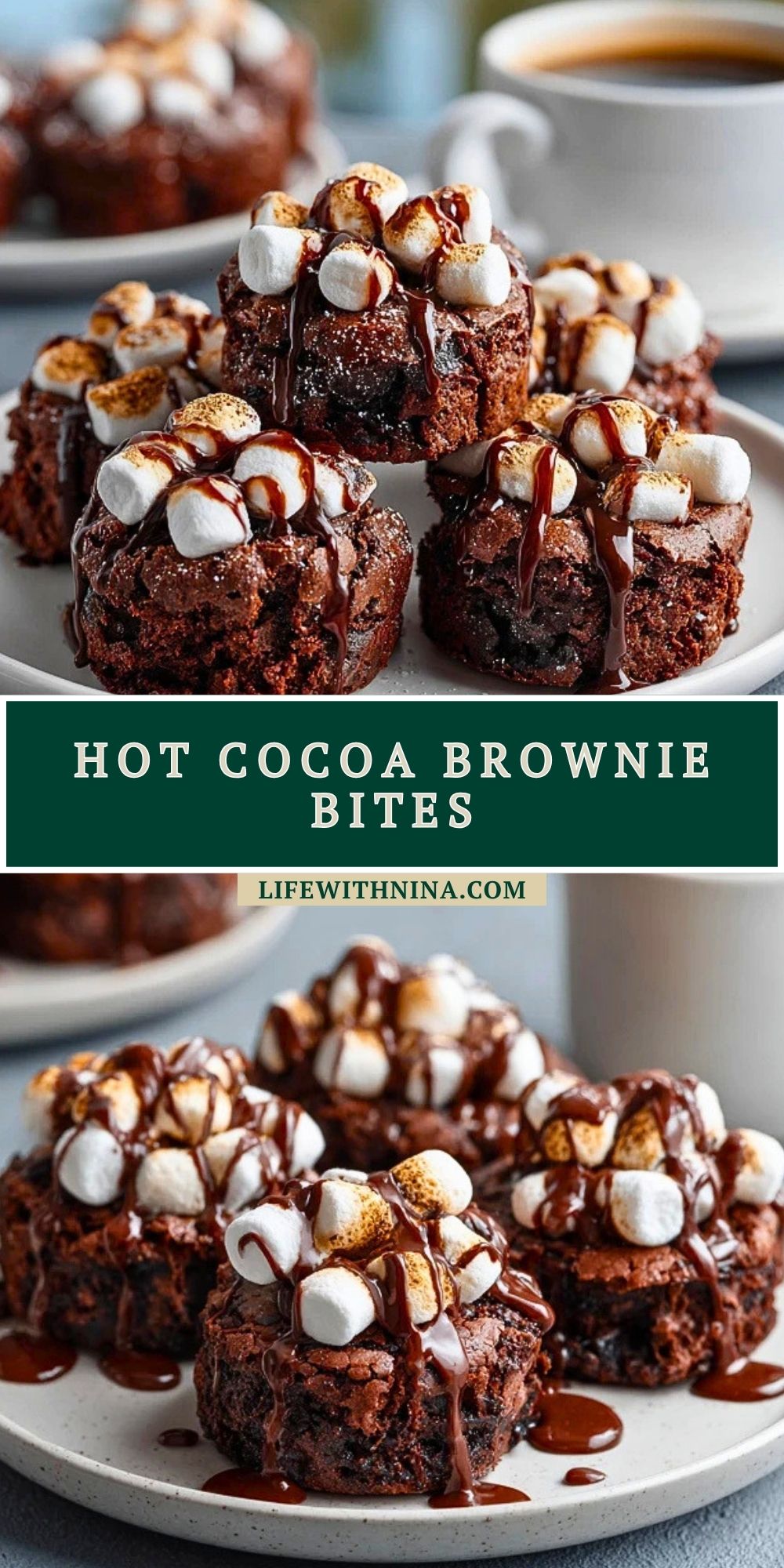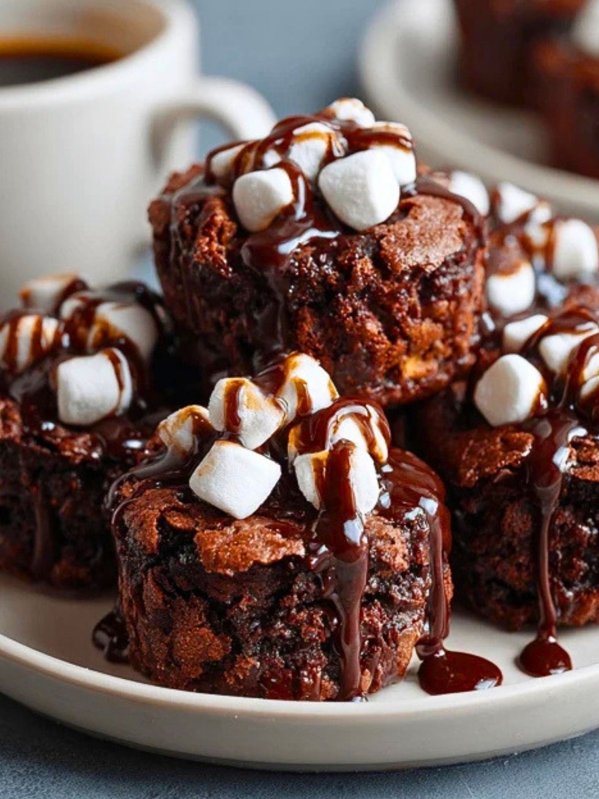 Mini marshmallows are the signature topping that turns these brownie bites into a hot cocoa-inspired dessert.