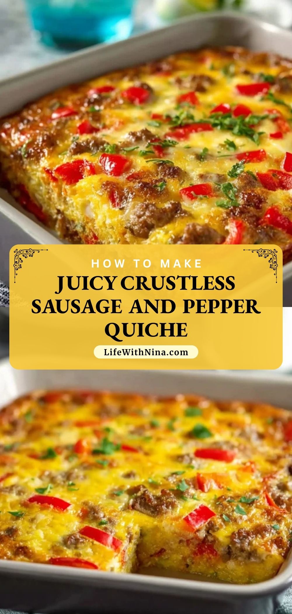 This Juicy Crustless Sausage and Pepper Quiche is a hearty, low-carb breakfast bake made with seasoned sausage, sweet peppers, fluffy eggs, and melted cheese. It’s perfect for brunches, make-ahead meals, and busy mornings. No crust, no fuss—just delicious flavor in every bite.