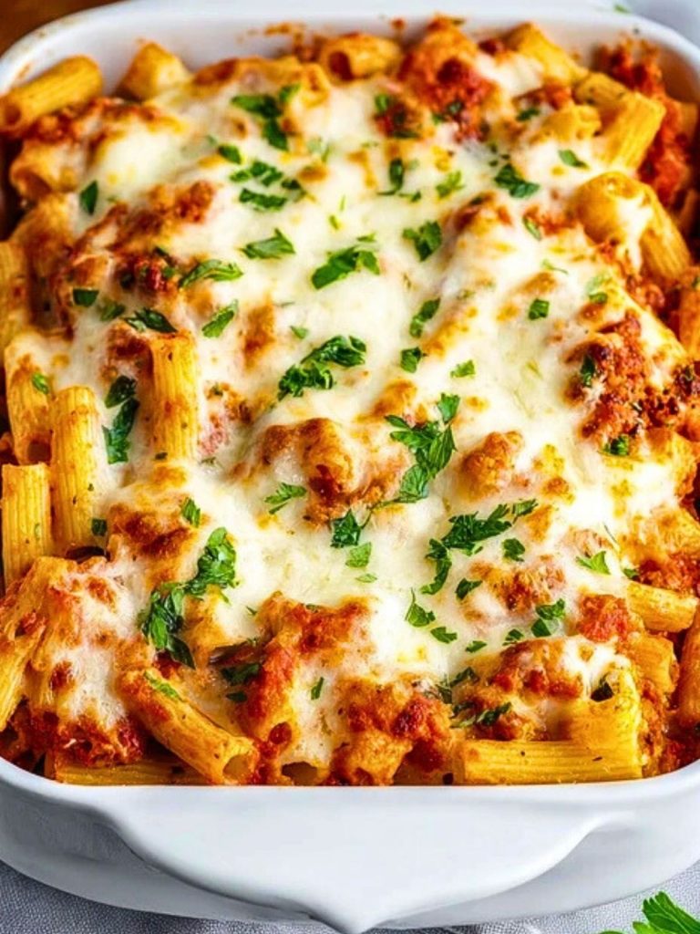 A bubbling dish of Meatless Baked Ziti is everything you want in comfort food—warm, cheesy, hearty, and full of bold Italian flavors. This vegetarian twist on a classic is proof that you don’t need meat to make a pasta bake satisfying. With layers of tender ziti noodles, rich tomato sauce, velvety ricotta, and plenty of melted mozzarella, each bite delivers that cozy, homemade feel.