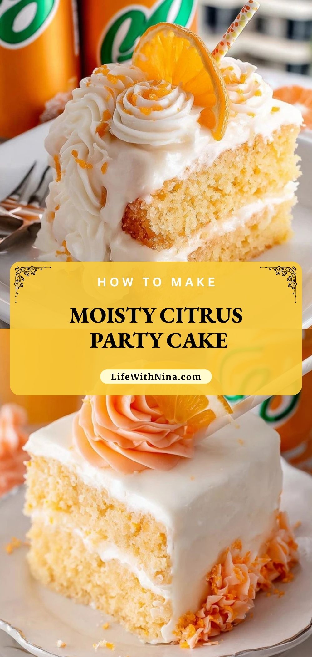 Moisty Citrus Party Cake is best served slightly chilled or at cool room temperature so the frosting stays soft and creamy while the citrus flavor shines. It pairs wonderfully with coffee, tea, sparkling lemonade, or a simple fruit platter for parties and brunches.