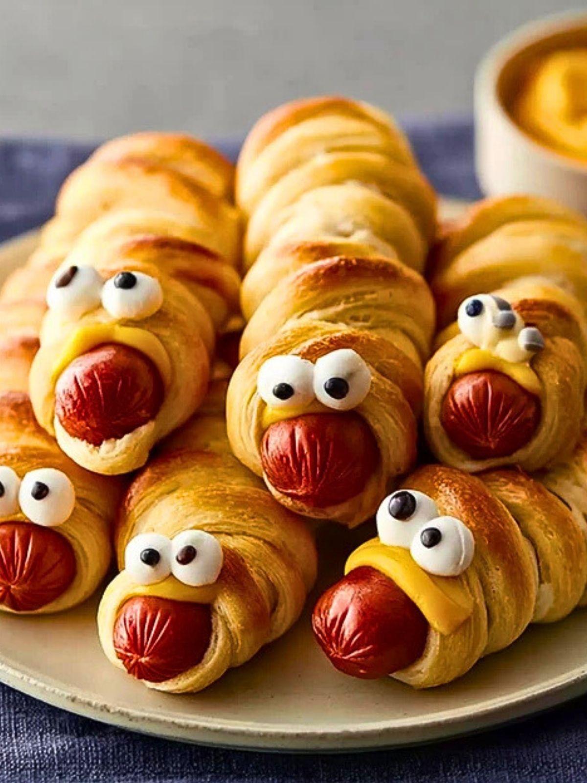 Refrigerated Crescent Roll Dough: This is what wraps around the hot dogs to create the mummy look. It bakes beautifully and adds a delicious buttery touch.