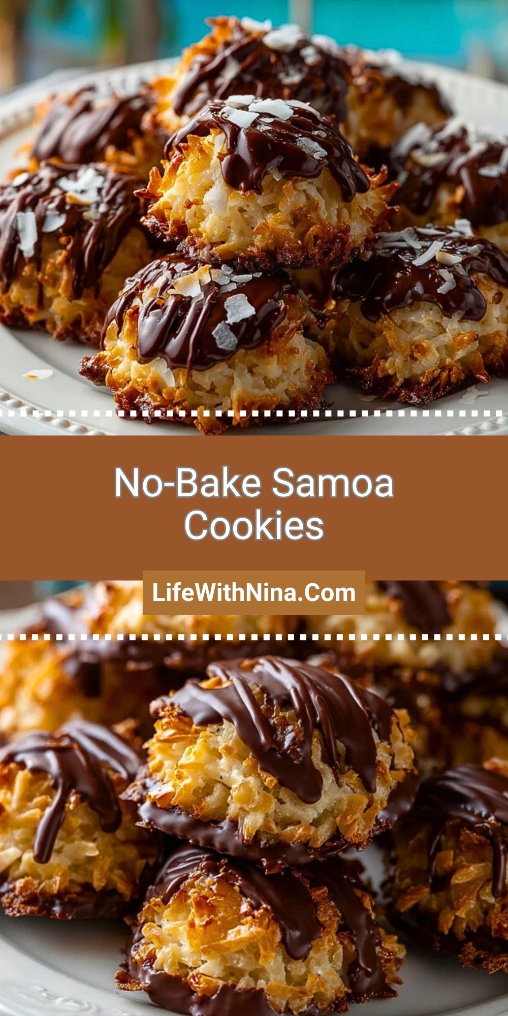 No-Bake Samoa Cookies are a perfect sweet to set out for any occasion—from cozy nights in to holiday parties. Stack them high on a rustic cake stand or layer them in parchment-lined tins for a charming homemade gift. They pair beautifully with a cup of dark roast coffee or a tall glass of almond milk for contrast.