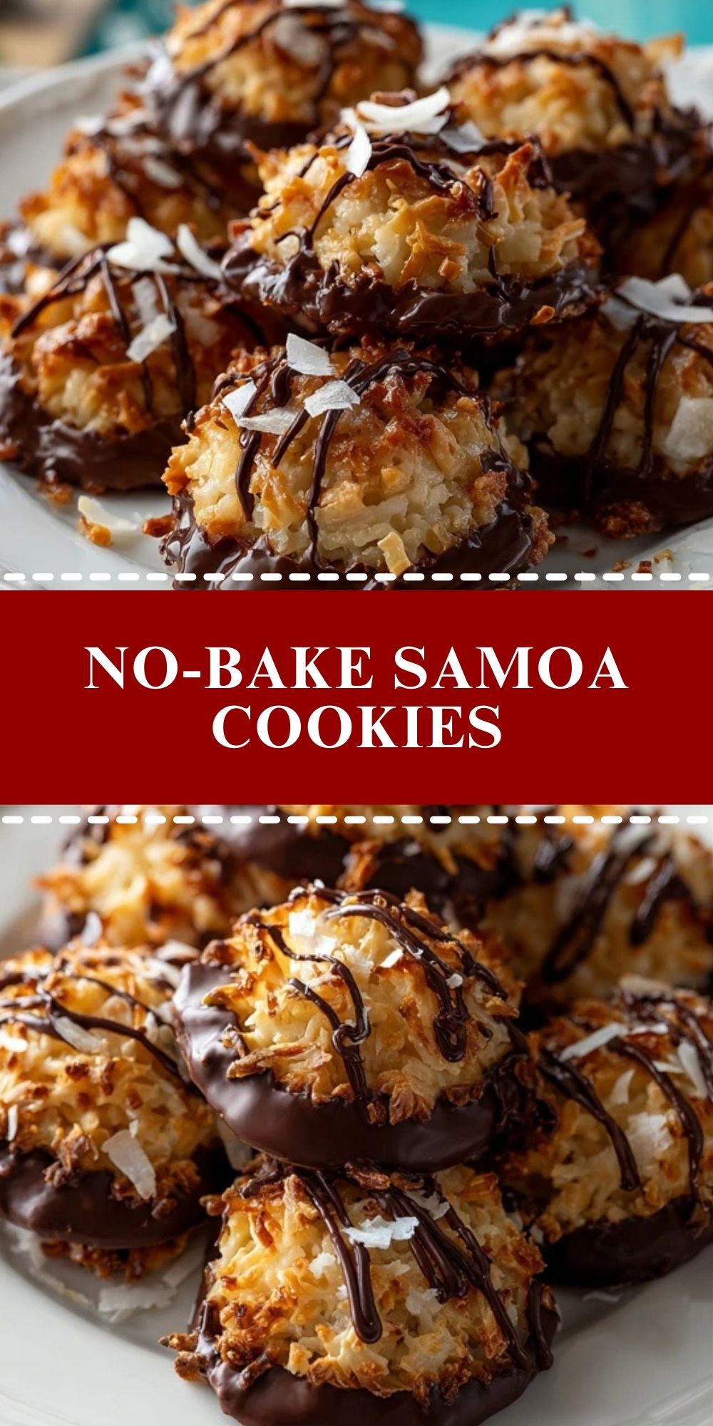These No-Bake Samoa Cookies are a delicious twist on the classic Girl Scout treat—featuring toasted coconut, rich caramel, and smooth chocolate, all made without an oven. They’re chewy, chocolate-dipped, and perfect for easy entertaining or weekday indulgence.
