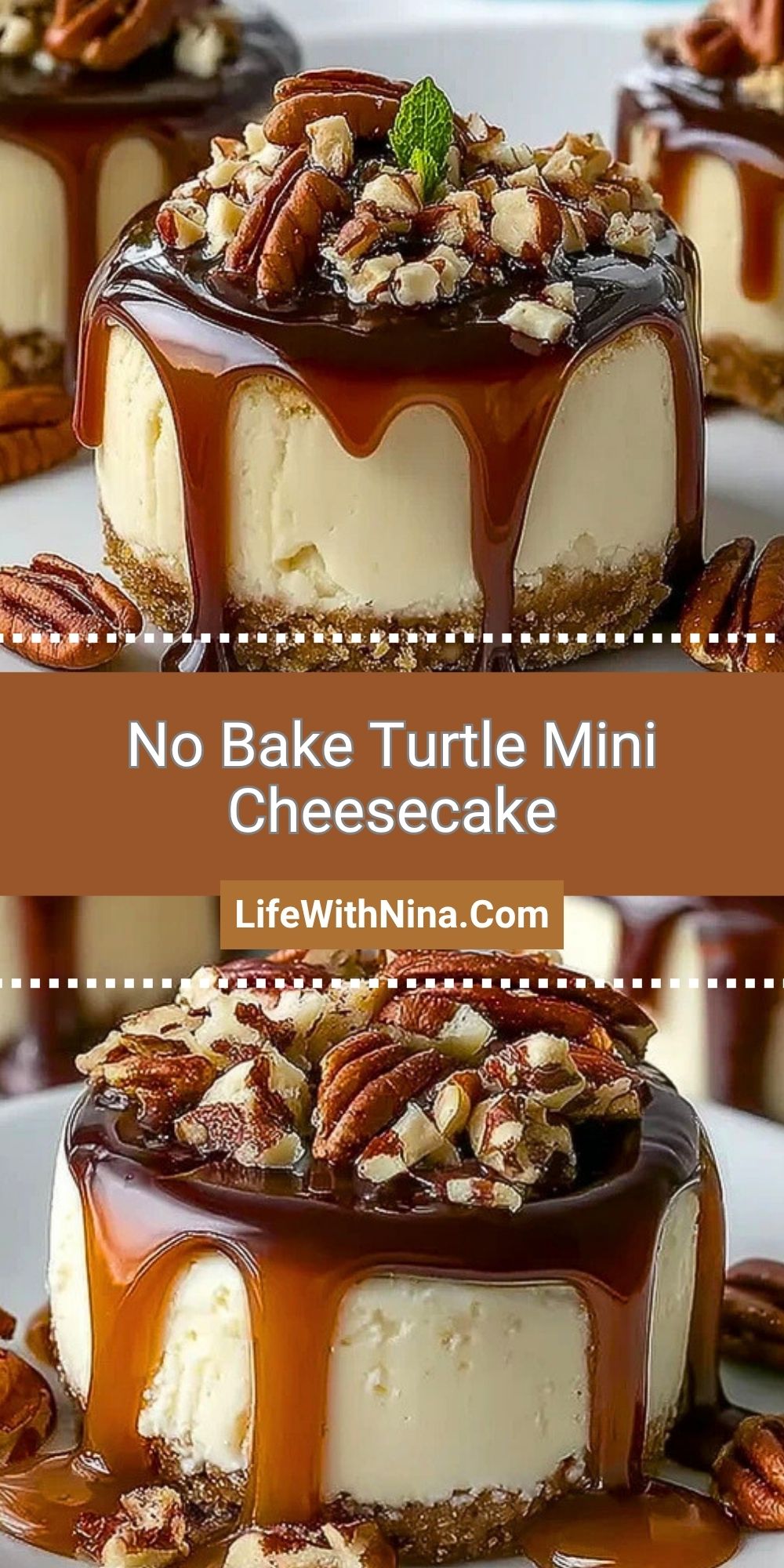No Bake Turtle Mini Cheesecake