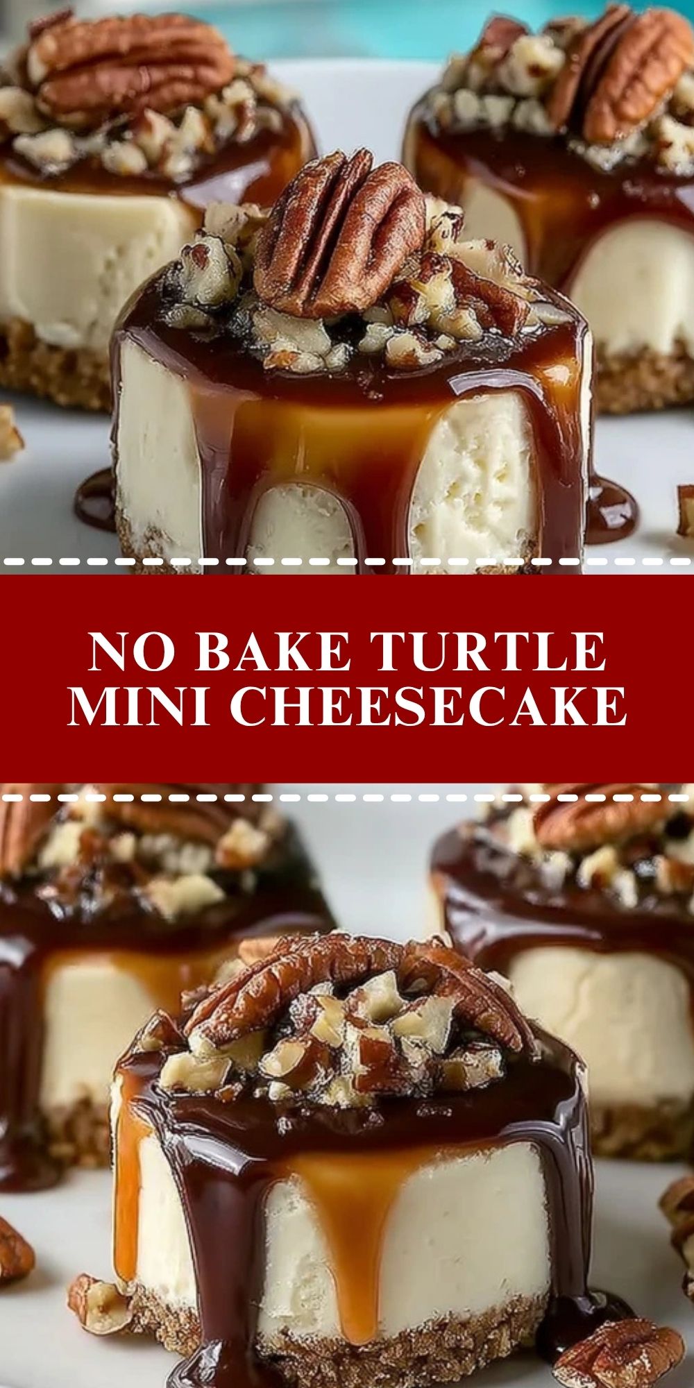 Keywords: turtle cheesecake, mini no bake dessert, chocolate caramel pecan cheesecake