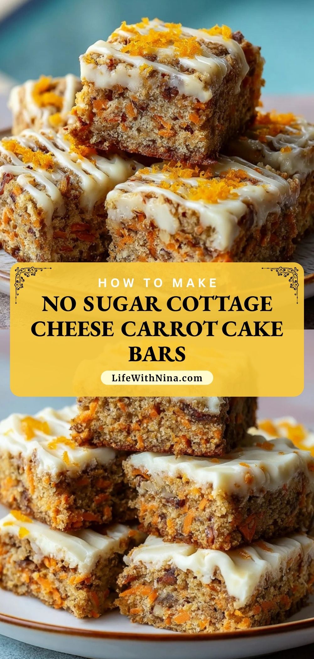 Keywords: healthy carrot cake bars, no sugar dessert, cottage cheese carrot cake bars, healthy snack recipe, easy breakfast bars