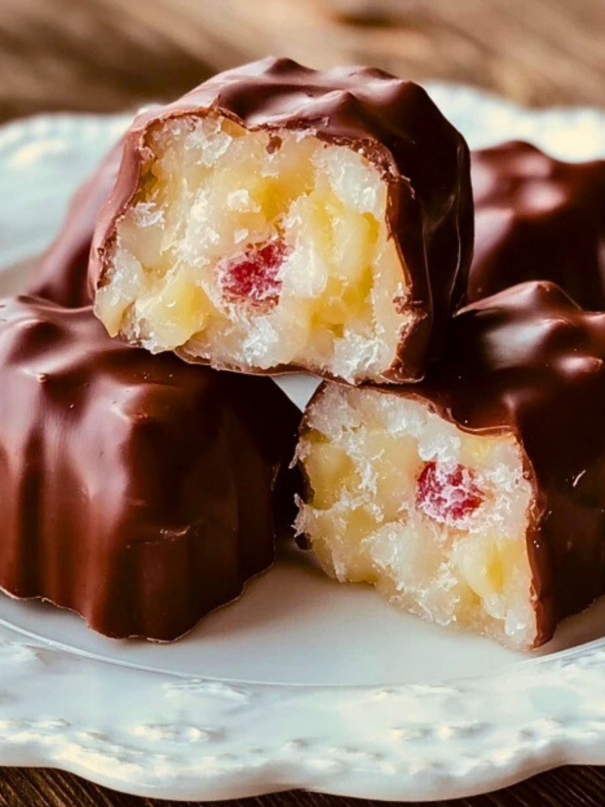 Rich, nostalgic, and irresistibly sweet, Old-Fashioned Martha Washington Candy is a vintage treat that has stood the test of time. These chocolate-covered coconut and cherry bites are a holiday staple and make the perfect edible gift or party platter addition. Each bite combines the satisfying crunch of pecans, the chewy delight of coconut, and the creamy sweetness of condensed milk wrapped in a smooth chocolate shell.
