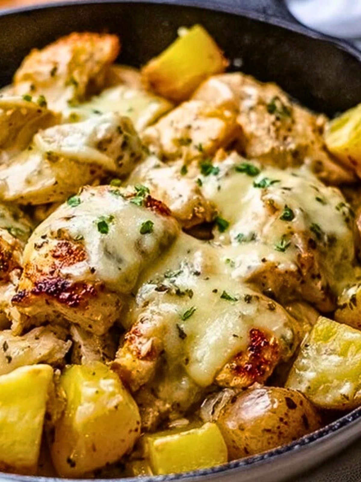 Each bite delivers tender chicken seasoned to perfection, nestled among caramelized potatoes, and smothered in a velvety, savory gravy that ties it all together. It’s the kind of meal that tastes like a Sunday dinner but comes together quickly enough for a Wednesday night.
