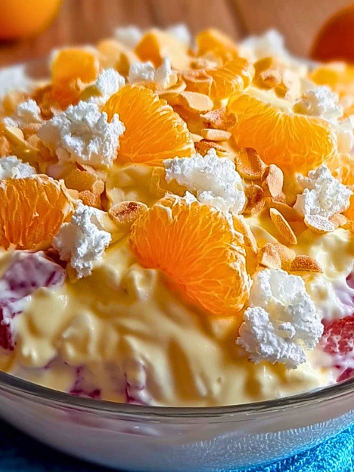 With vibrant mandarin oranges, fluffy whipped topping, silky vanilla pudding, and juicy chunks of fruit, this salad has all the charm of a retro dessert with the ease of a modern recipe. It’s a no-bake, no-fuss delight that comes together in minutes and disappears just as quickly.